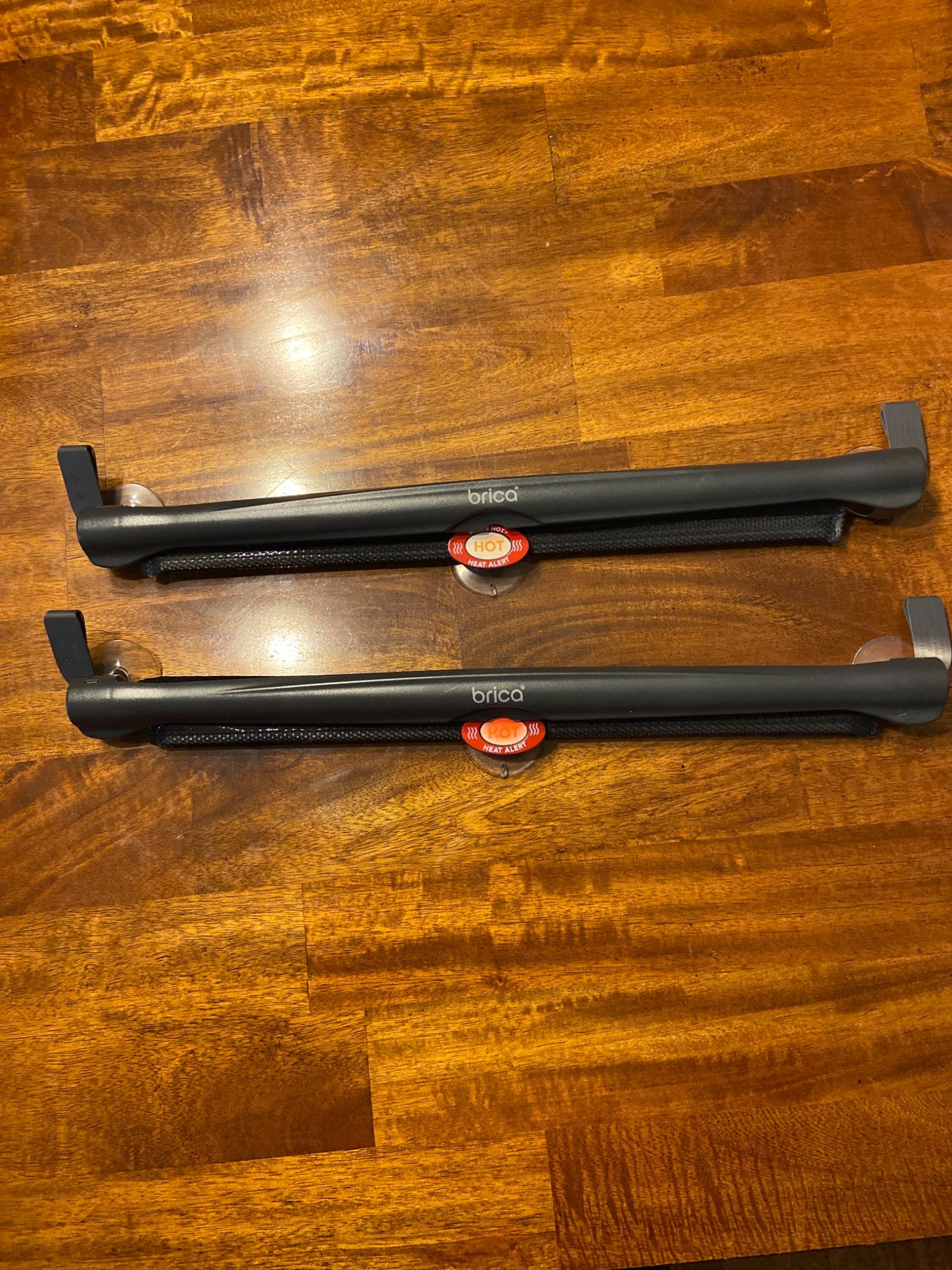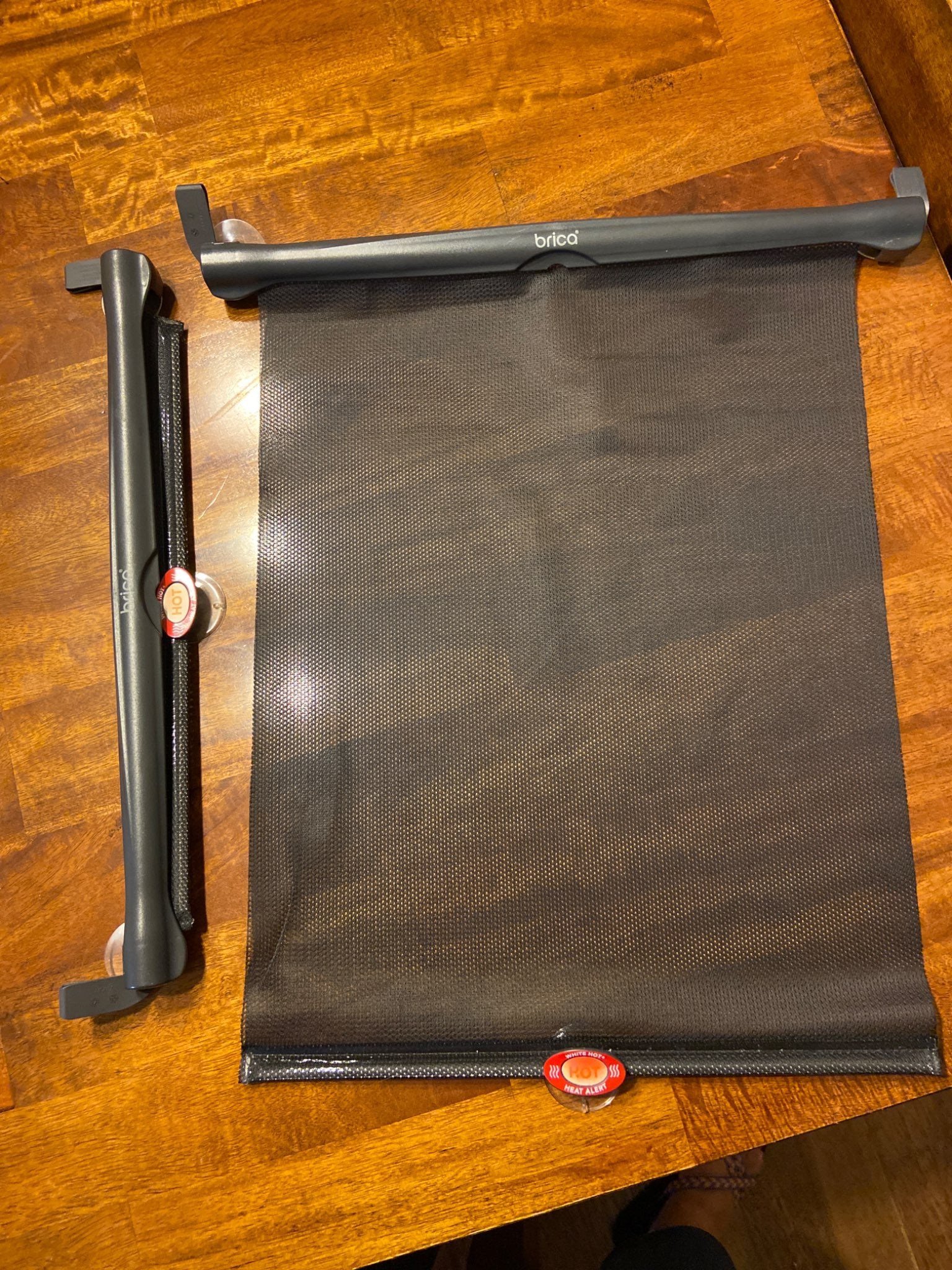 Description : Sun shades for inside of car windows. 15” wide, 17” long. Heat sensitive alert badges don’t really work anymore but I found them to be irrelevant anyways. Shades can be hung from or suctioned to windows.