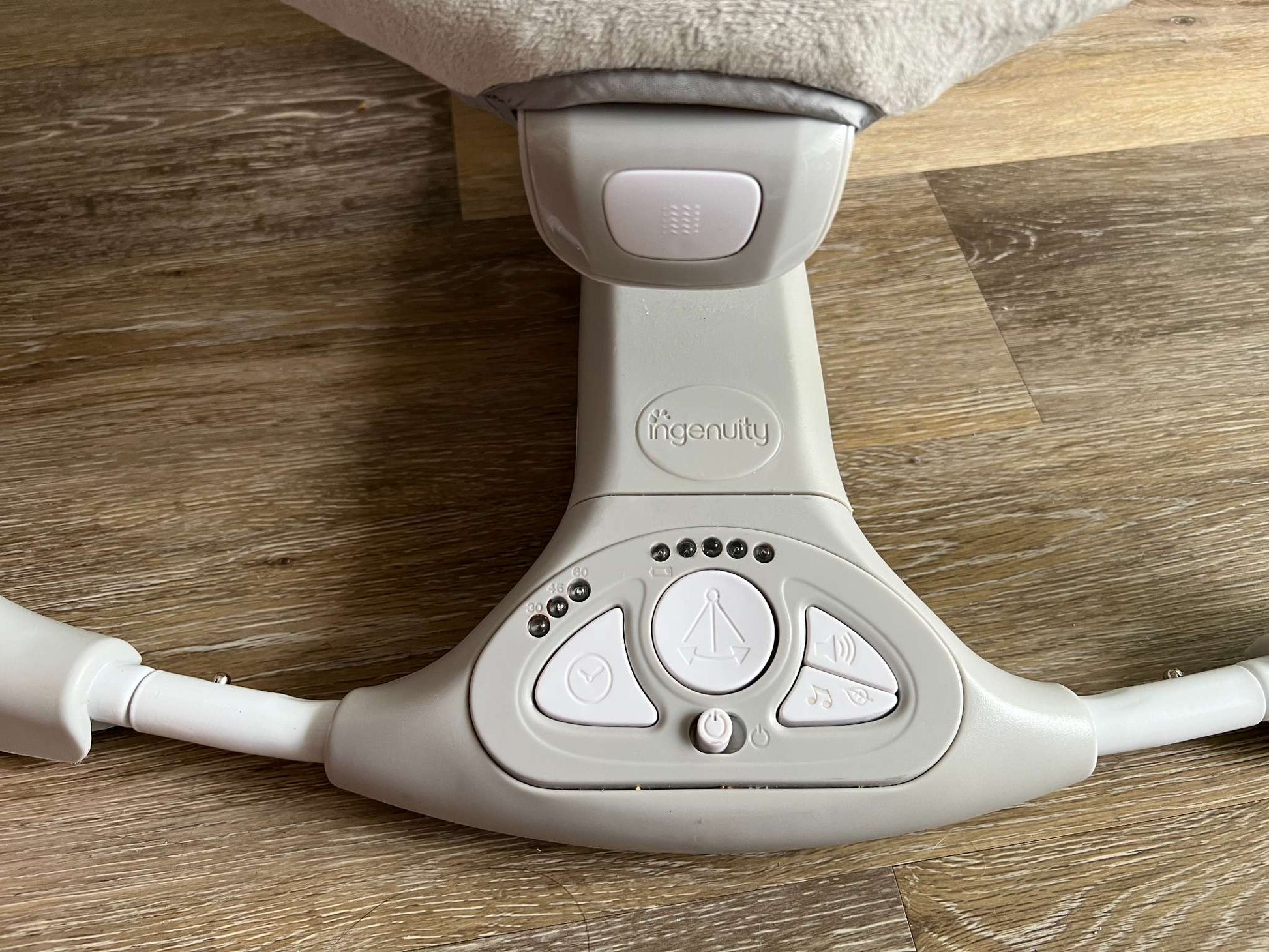 Description : Bright Starts Ingenuity ConvertMe Swing-2-Seat provides a soothing sway for your baby. Right 2 buttons on modes panel stick slightly but does not interfere with function. Includes optional 5 speeds and 3 timer settings at 30, 45 and 60 minute intervals, 4 nature sounds and 12 melodies, seat vibration and locking system for no sway. Pivoting, removable toy bar creates interest for baby and toys can be added on. Foldable for storage and portability. 0+ until baby is ready to move on! This swing is a great choice of comfort for baby who needs to be rocked when mom or dad needs a rest or hands free to get things done!