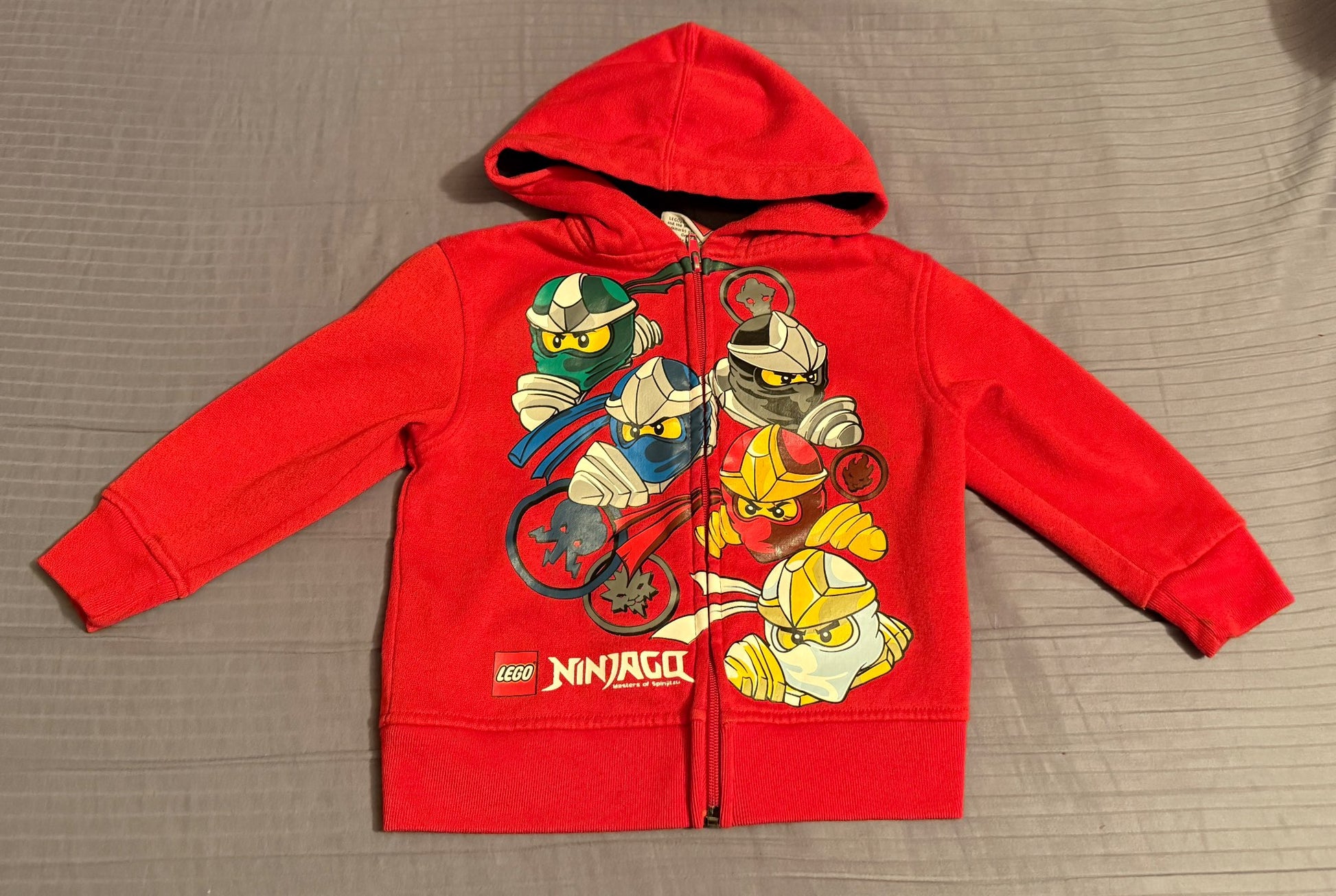 Description : Bundles of 5 boys clothes Size: 2T Includes: - Lego Ninjago hoodie with zipper in red - Joe Fresh rain jacket with zipper and pressed buttons - Baby Gap long sleeve shirt in navy blue/red - OshKosh B'Gosh long sleeve shirt in orange/blue - Just Max shorts in navy blue