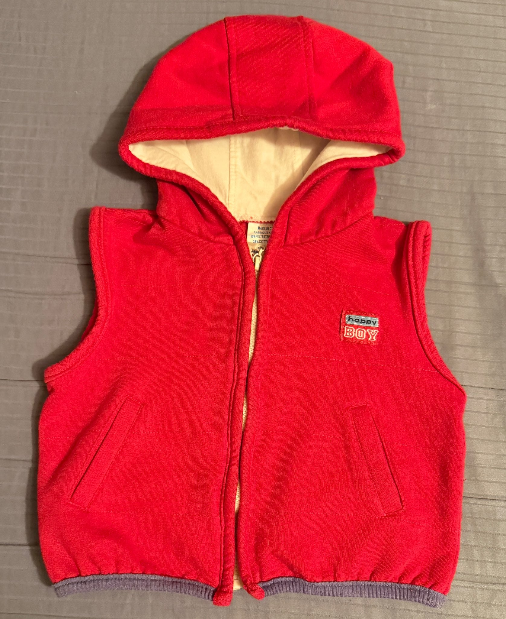 Description : Bundle 0f 4 boys tops Size: 12-18M Includes: - Vest with hoodie and zipper in red - Jordan t-shirt in black/grey - Carter's denim jacket - Puma long sleeve shirt in olive green