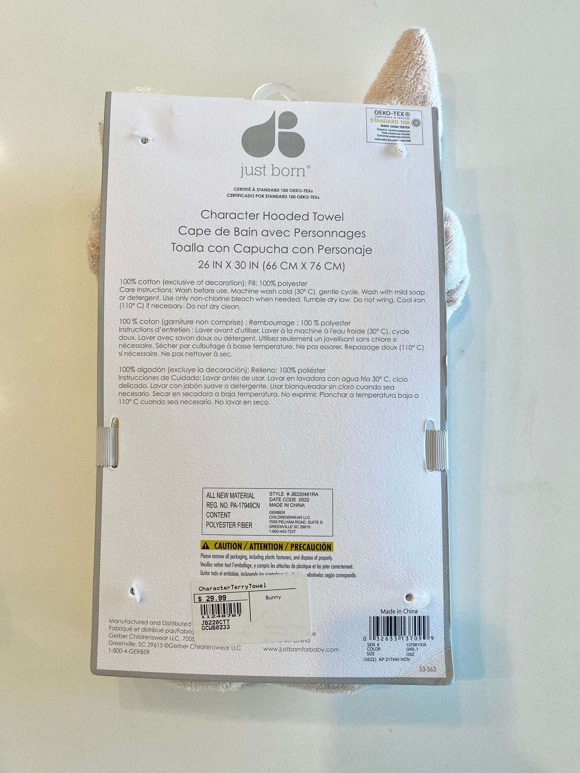 Description : Bunny Hooded Towel Brand new with tags Super cute! Would make a great baby shower gift. Size: 26” x 30” 100% cotton MSRP $29.99