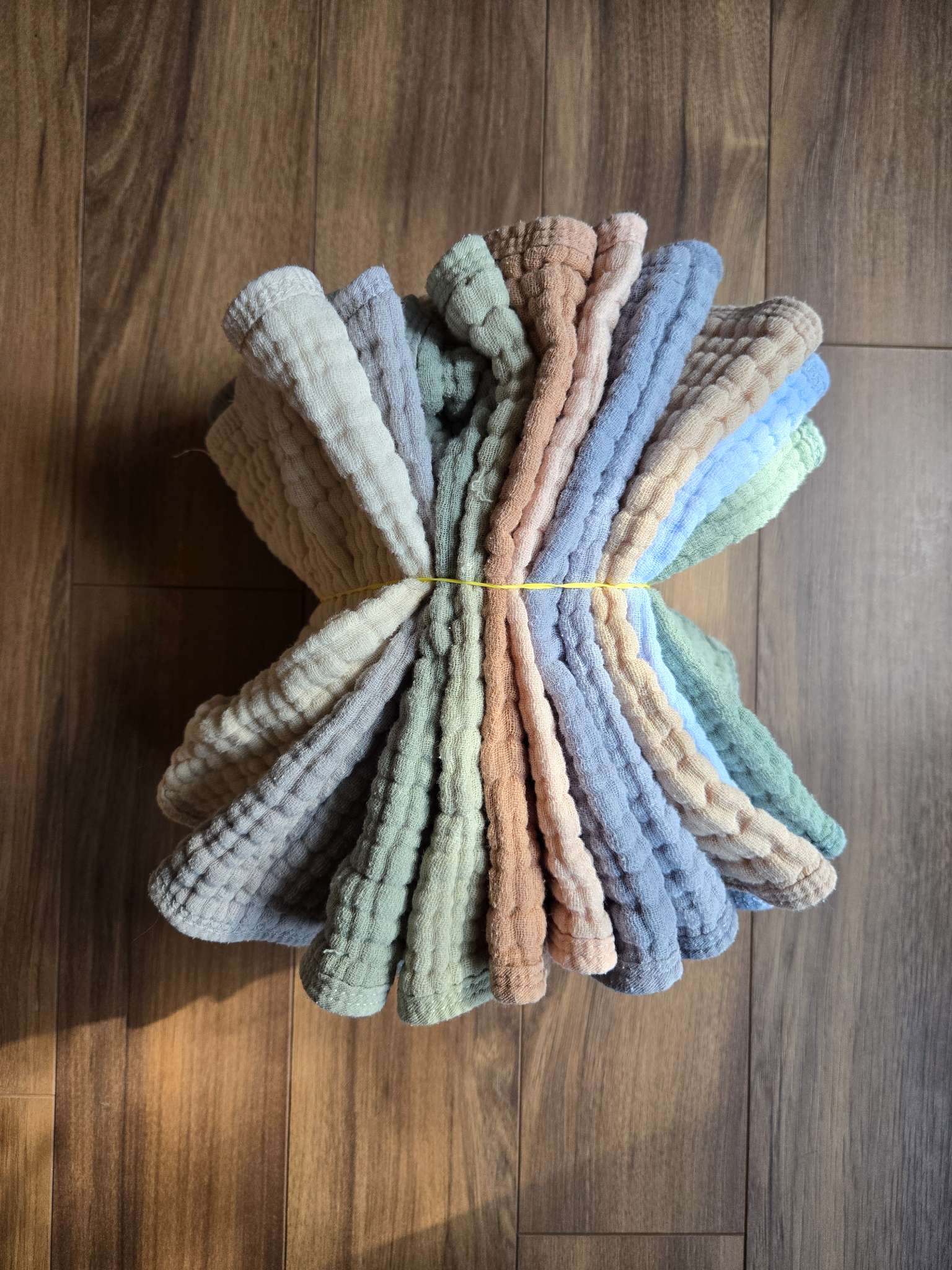 Description : 11 burp cloths, multicolored. Used but in good condition.