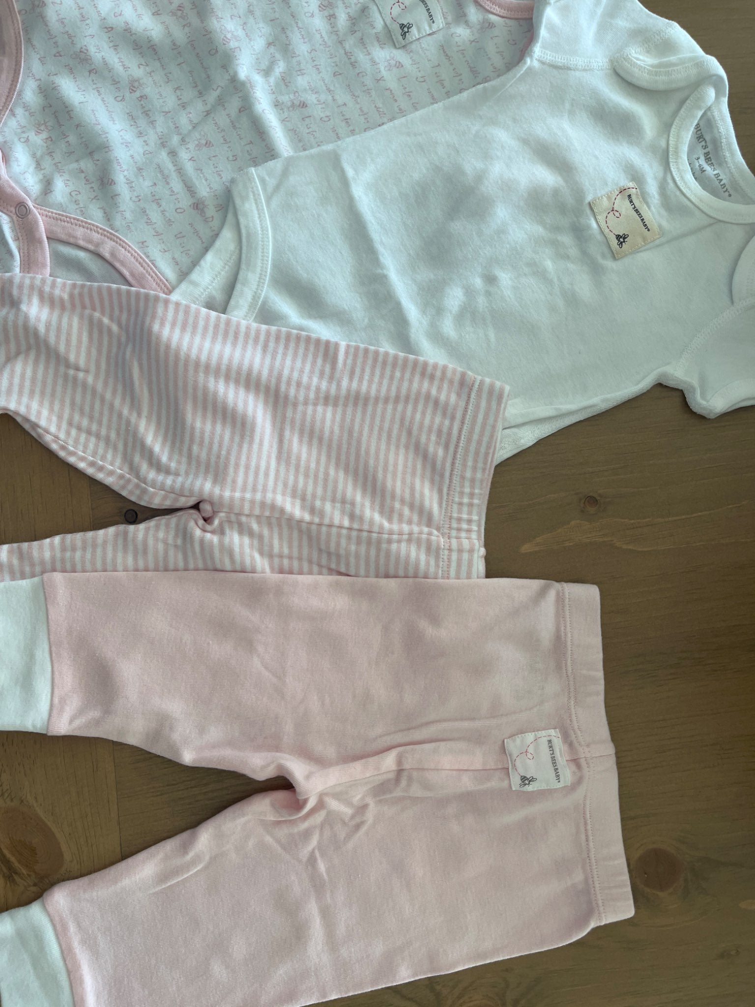 Description : Includes three short sleeved onesies and two matching pants. Adorable and barely worn. Size 3-6 months.