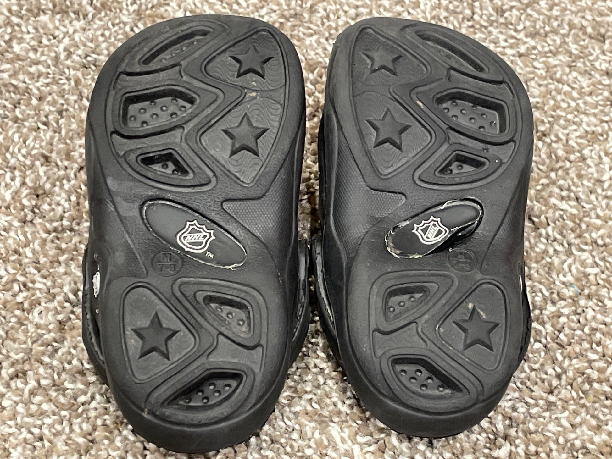 Description : Calgary Flames Sandals, Toddler size 7/8,VGUC. Similar to Croc Sandals.