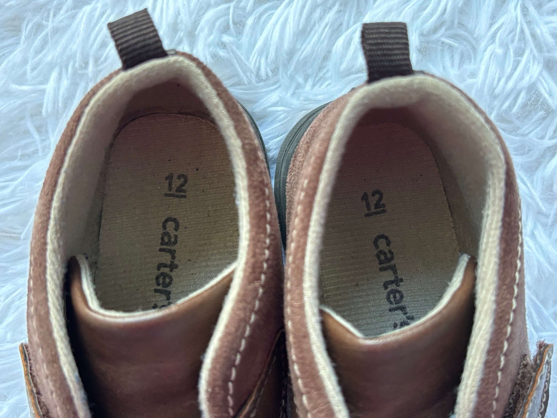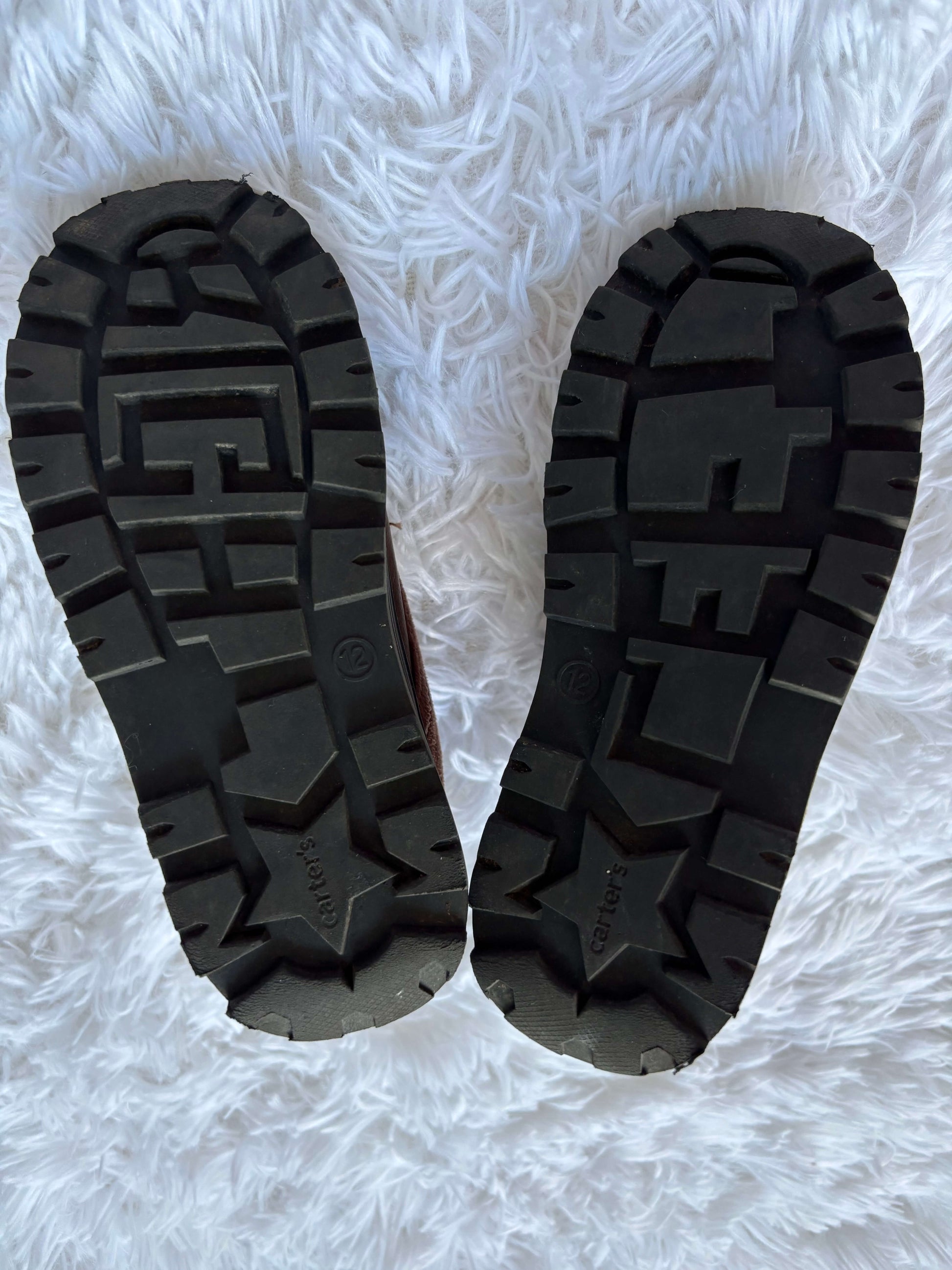 Description : Carter’s dress boots/shoes (not lined). Size 12, boys’, brown, lightly worn by one child.