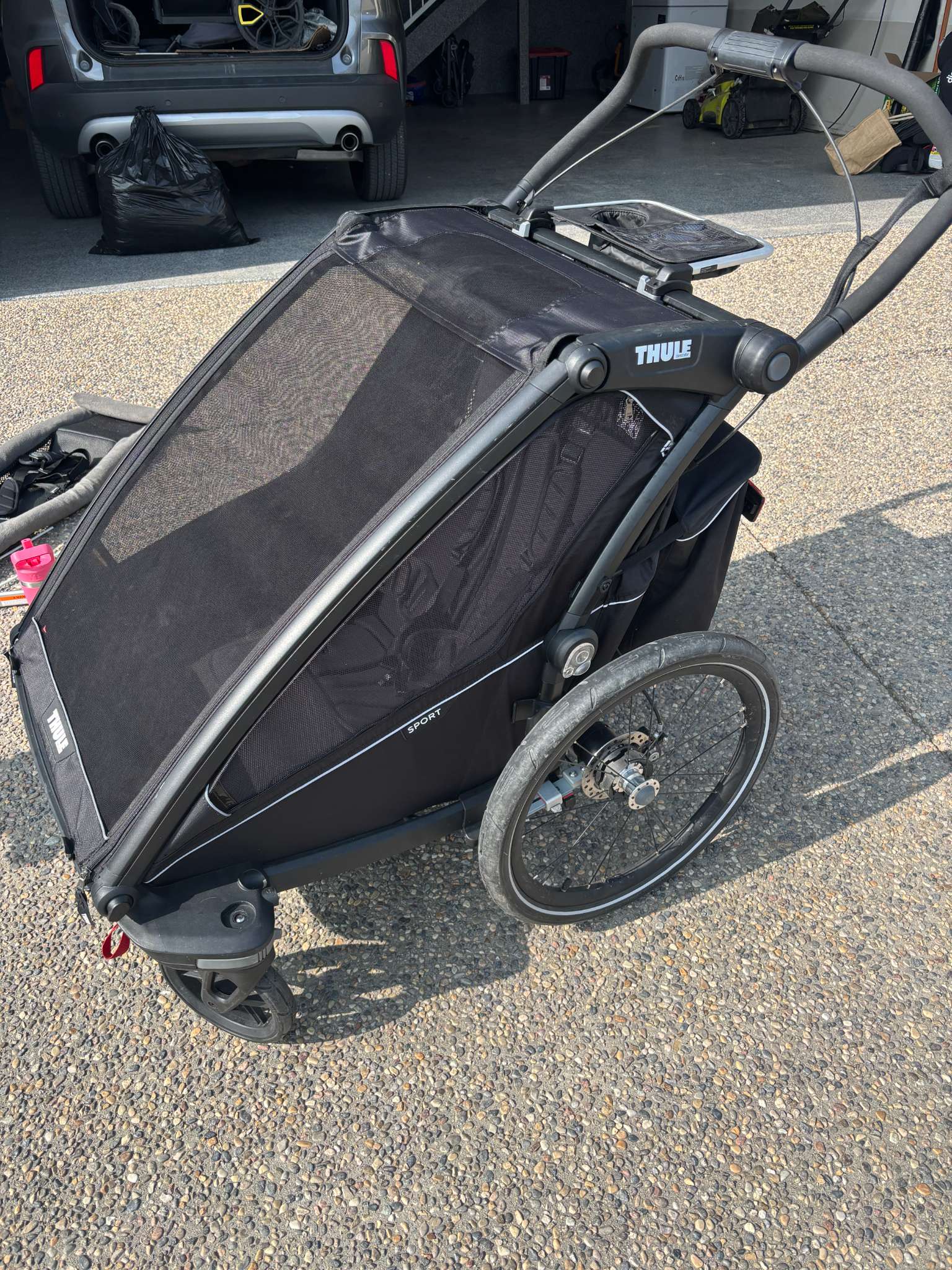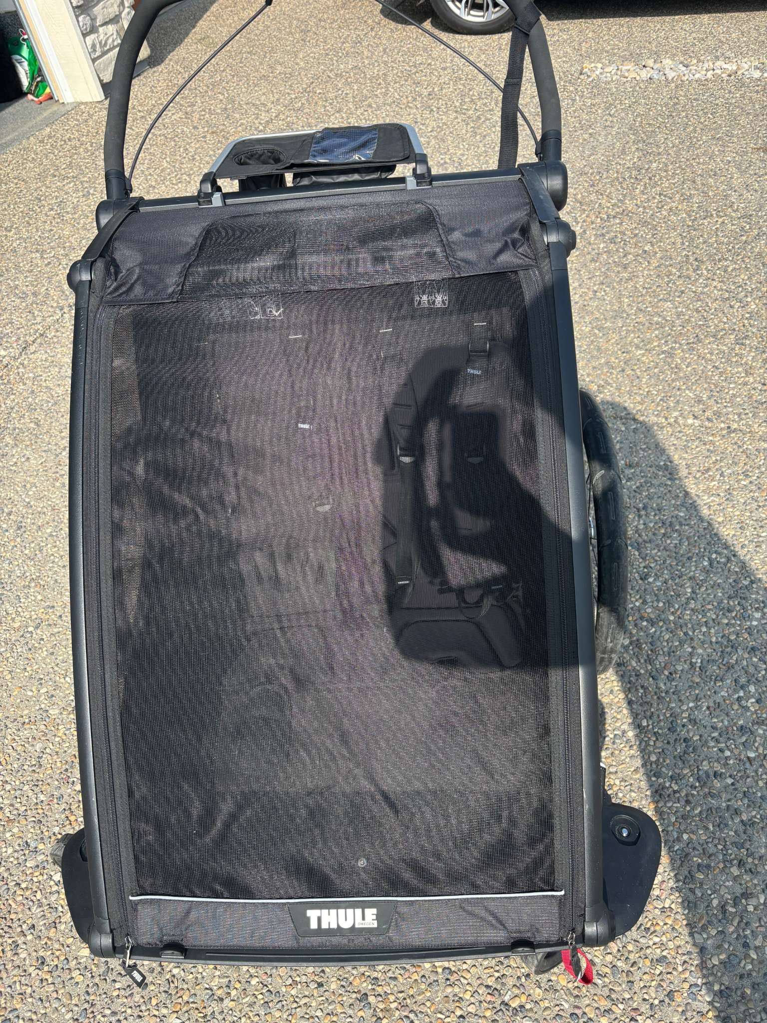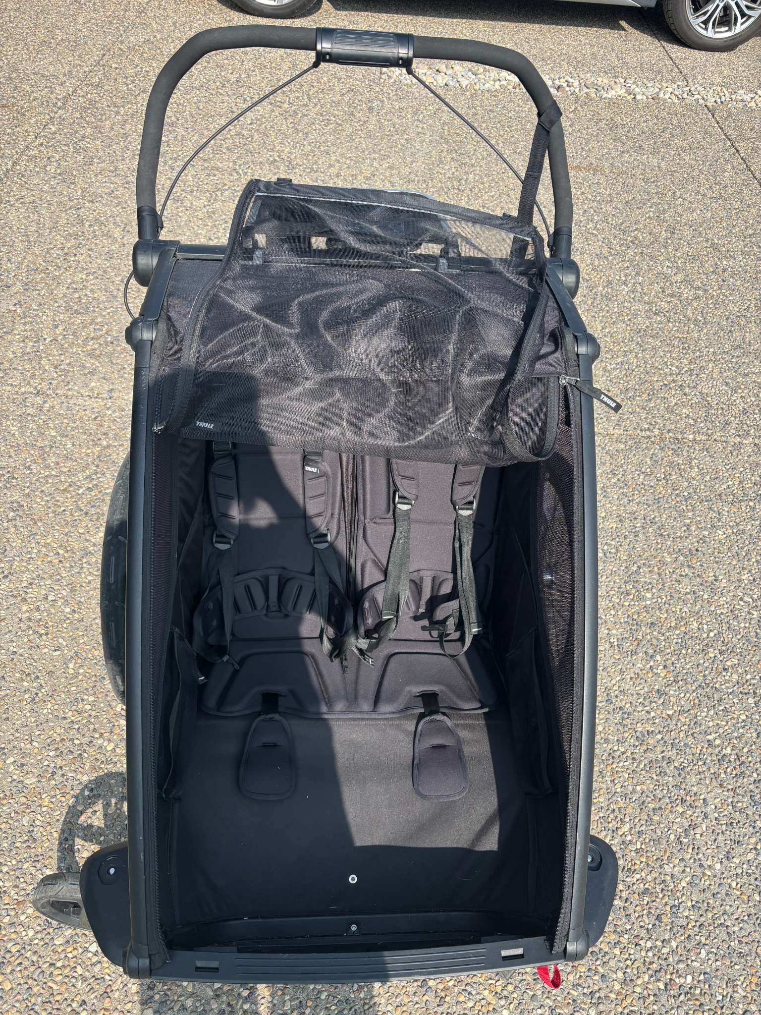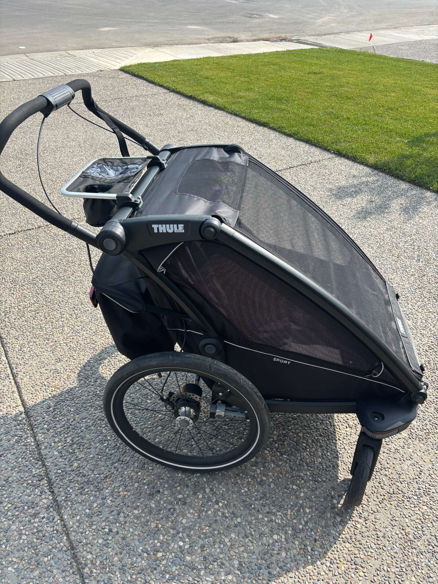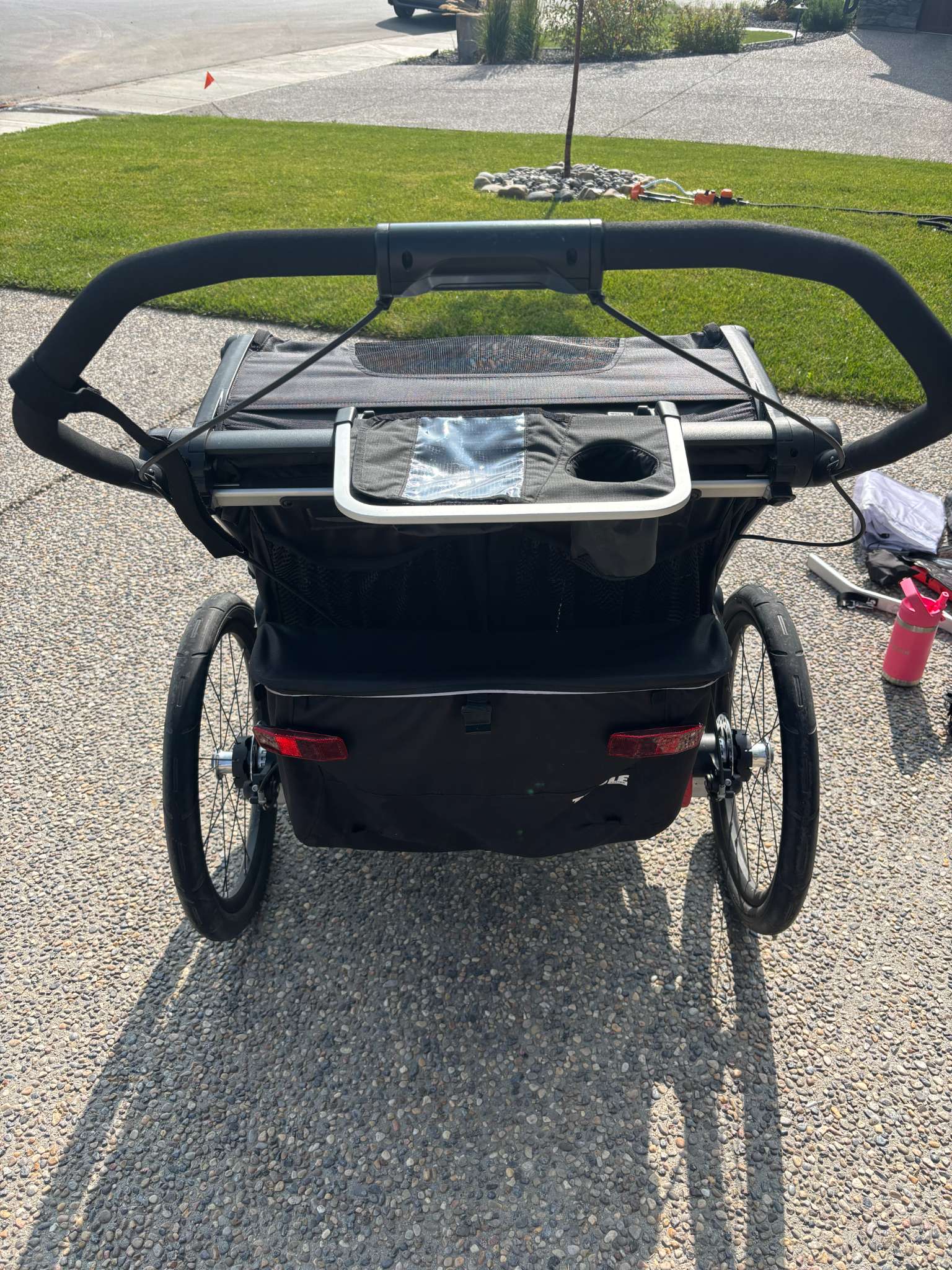 Description : In excellent condition! A few minor scuffs, but otherwise great condition. All accessories included plus infant sling and cup holder. can be used as a stroller, jogging or biking, ski set can be purchased separately. Retails for over $1700.