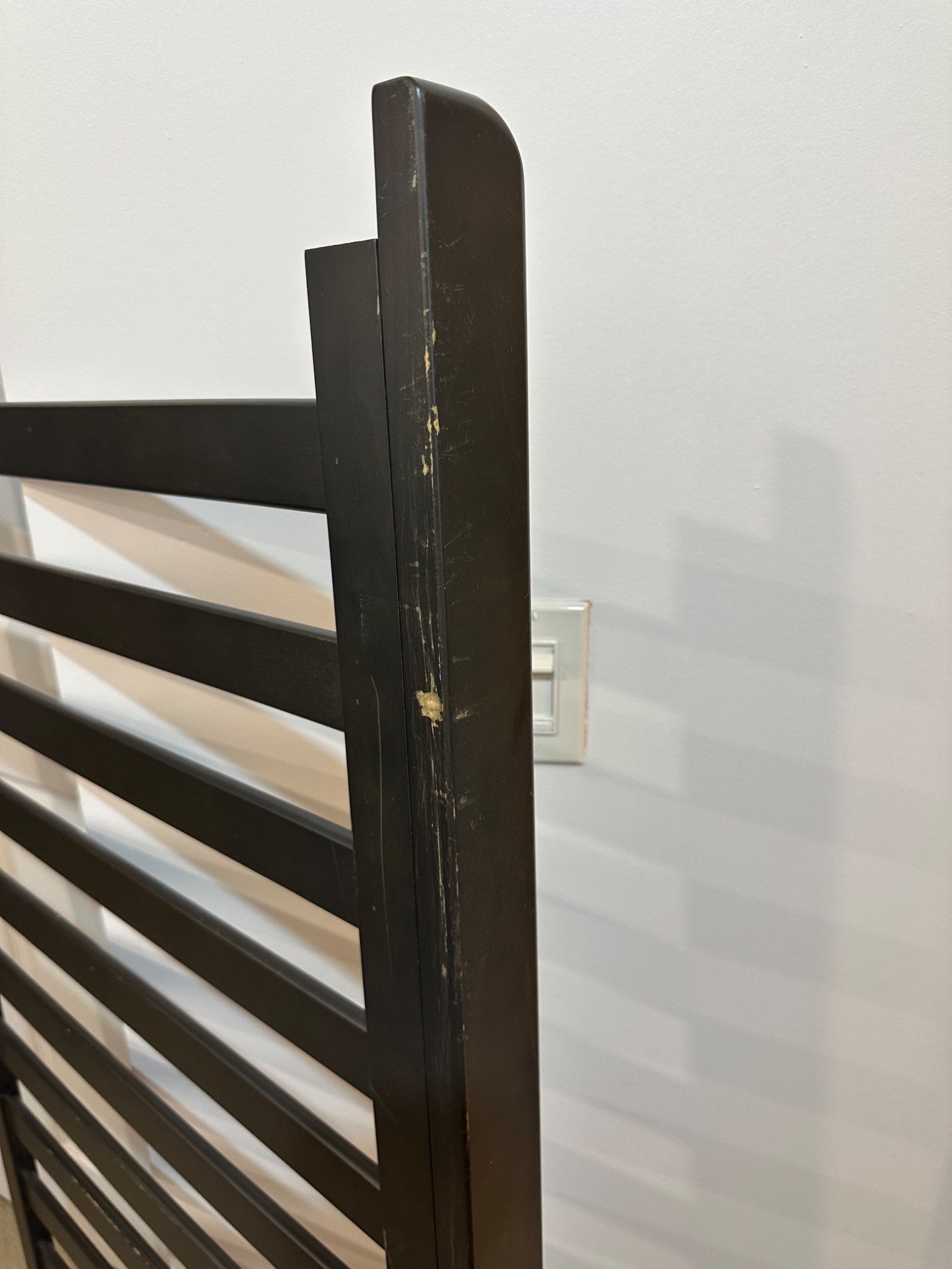 Description : Beautiful flat top crib in the colour dapper grey. The crib itself was around $400 and the extra toddler rail was $100. The crib is taken apart as my son moved to a big boy bed so the pictures I have of it fully assembled are as shown with my son cropped out. The first picture is the bed assembled with the toddler rail, the second picture shows some of the railing damage due to my kiddos chewing on it. The last pictures are of the other full crib side rail that was taken off for the toddler rail. It shows the rest of the wear and tear/chewing marks. There are no true holes in the wood it is just the layer of paint that has come off (all feel smooth to touch). This crib went through two kids (approx 5 years) overall it is in really good condition and is still functionally in great condition. All hardware included. Below is the link for the assembly instructions. https://www.childcraftbaby.com/files/39001.pdf