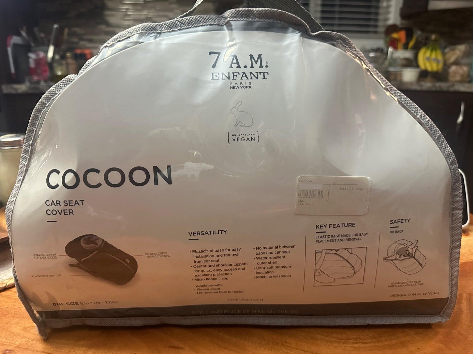 Description : fits all models seamlessly, slipping on and off in seconds and fitting snugly thanks to a simply designed elastic base. And though it's resistant to both wind and rain, it's ultra-lightweight and comfortable for your little one. It's a timesaver, too. You won't have to struggle with multiple layers of garments, just make sure your baby is well dressed in the car seat and the Car Seat Cocoon will shield from the harshest conditions, keeping baby cozy on winter walks. If it gets a little too warm outside or in the car, just pop open the convenient side shoulder zippers to uncover baby's head. The Cocoon has an ultra-soft insulation, plush lining and best of all, it's totally machine washable and dryable. Features Contoured fit removes any material between baby and the car seat 5-point harness Elastic base makes for easy installation and removal Central zipper allows for quick & easy access to baby Horizontal shoulder zippers for uncovering baby’s head Lightweight, windproof & water-repellent outer shell Ultra-soft premium insulation and coral plush lining Machine washable Temperature Rating: -4°F/-20°C Dimensions: W: 20”, D: 2”, H: 37”