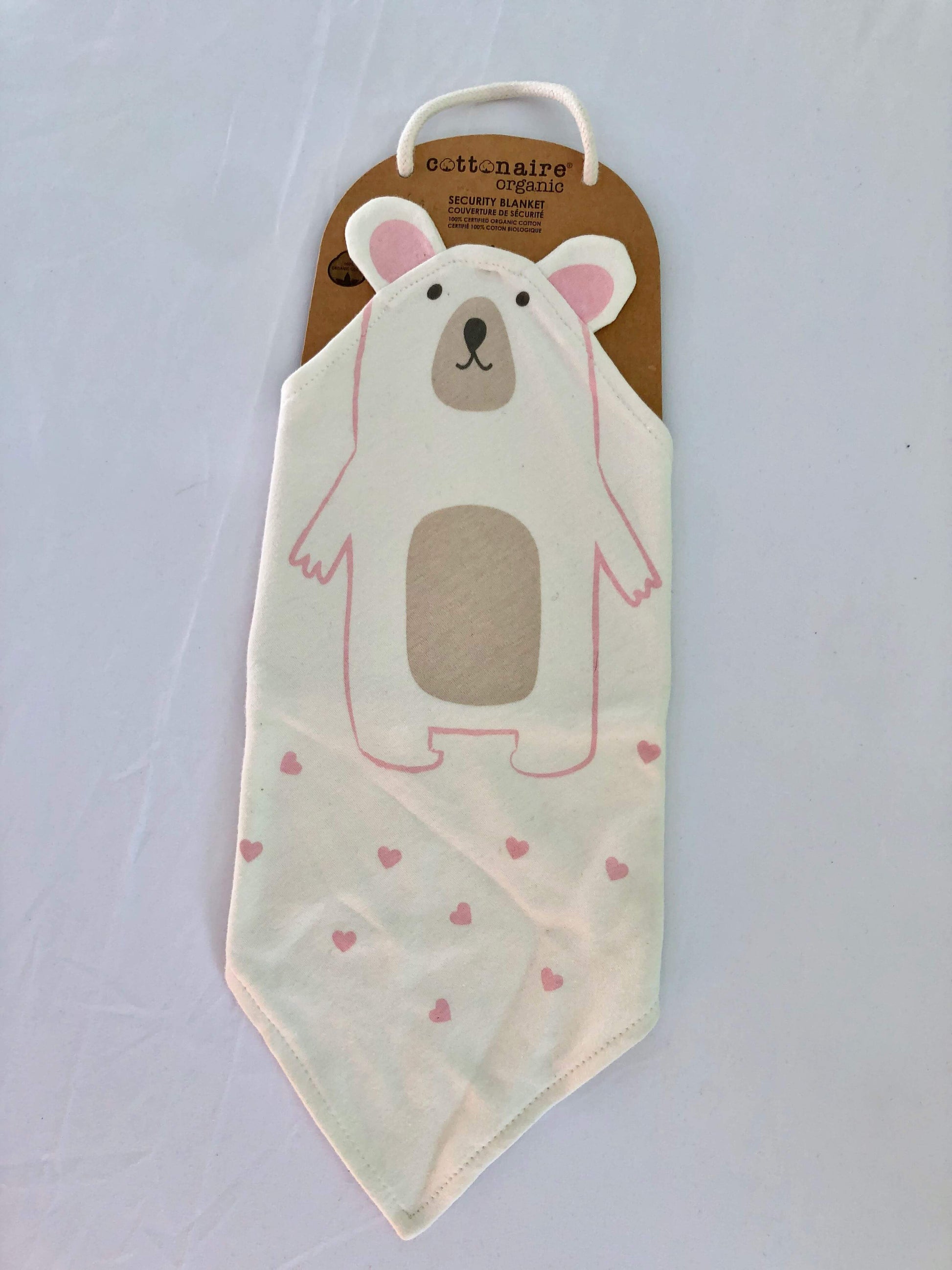 A tiny soft bear blanket lovey with pop ears for little one to cuddle.