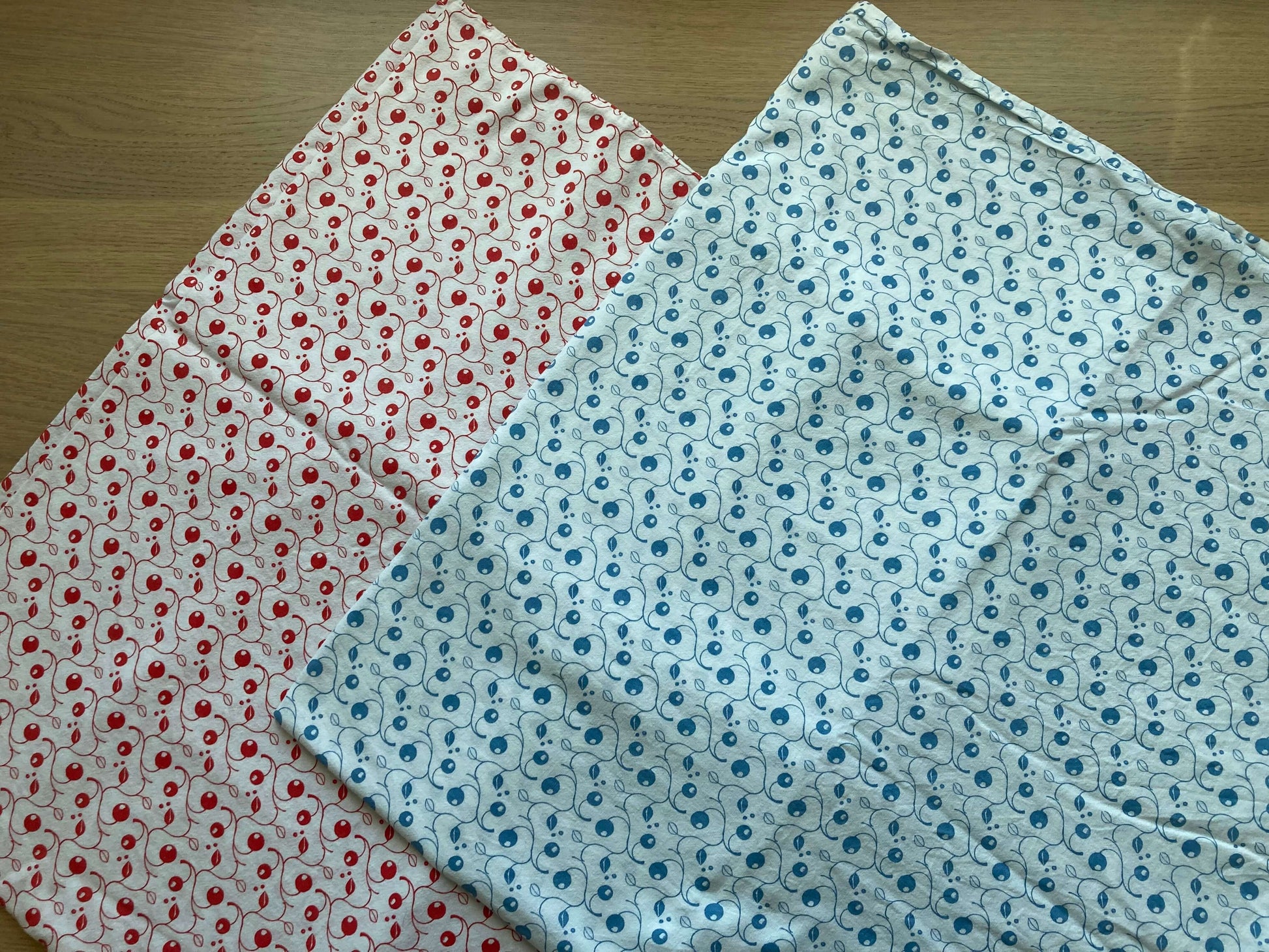 Description : Add some Scandinavian charm to your child's nursery with these blueberry and lingonberry duvet covers (made of cotton) and light, cool and comfortable duvet. The soft fabric of the comforter is woven from lyocell and sustainably grown cotton ‒ easy-care natural material that breathes and transports moisture away. Looks and feels so lovely! The whole set is in great condition.