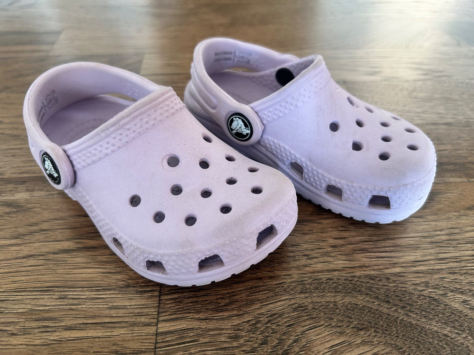 Description : Lilac Minor tree sap staining on soles. A couple indents where jibbitz previously were attached.