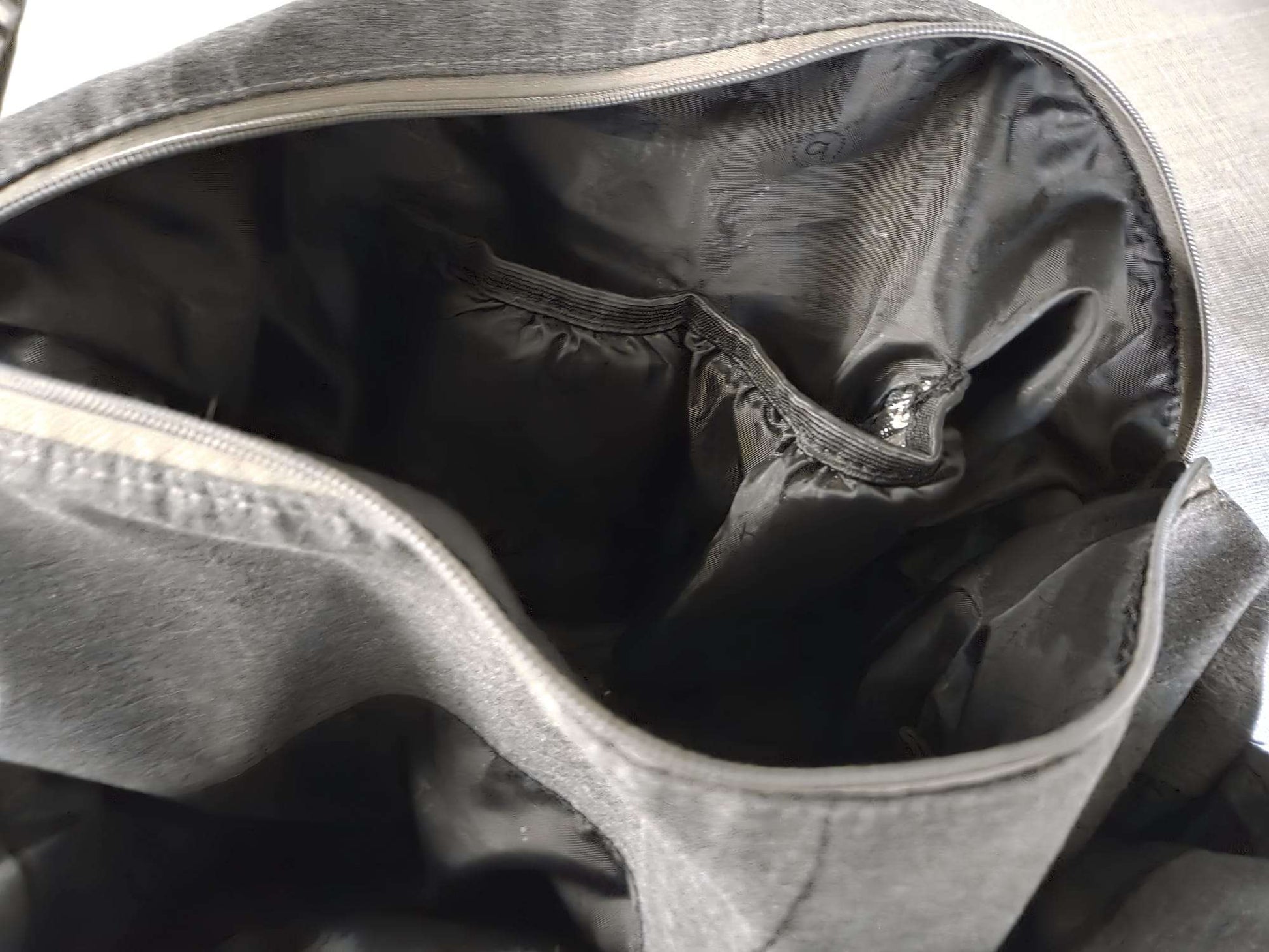 Description : Over the shoulder diaper bag withe pockets on each side as well as insulated pockets inside for bottles. Also comes with strap. Dark grey/ black colour.