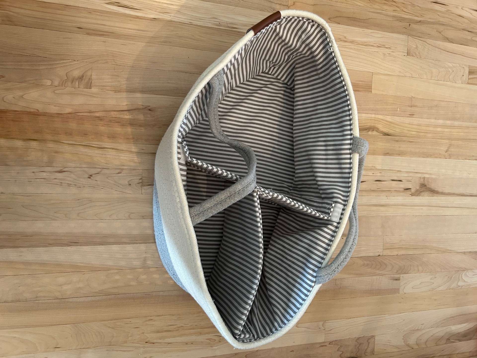 Description : DECOMOMO Diaper Caddy Organizer, Cotton Woven Baby Basket with Removable Divider (Grey & Ivory White, Large)