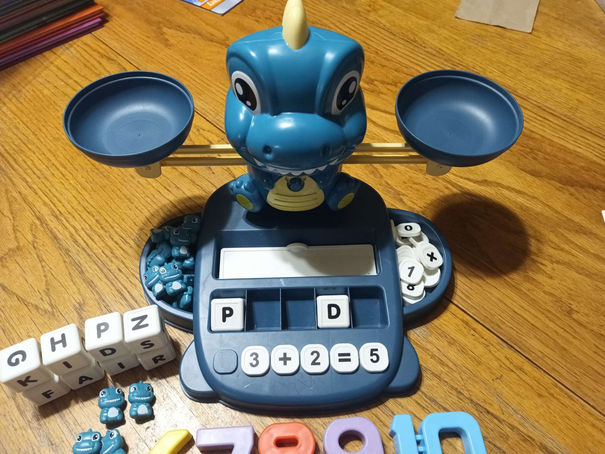 Description : Good used condition, can use the pieces in many different ways. Large numbers are weighted; #4 = four dinos for example. All 32 cards accounted for, in the smaller square numbers the 'minus' sign is missing. Fun kit to play around with little one.