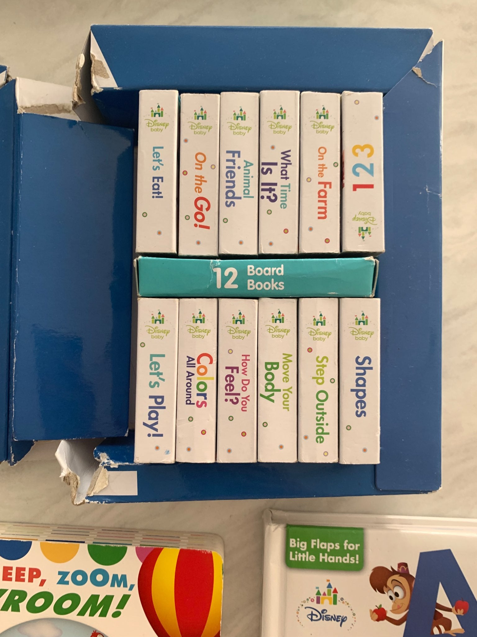 Description : Box set of 12 (carrying box cover is ripped but books in good condition), plus 2 baby learning books.
