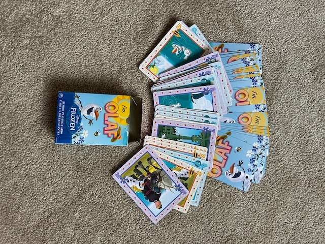 Description : Olaf Jumbo Playing Cards. 52 set. Great for kids that love Froze and card games. The cards are large and easy to handle for little hands. Perfect for family fun.