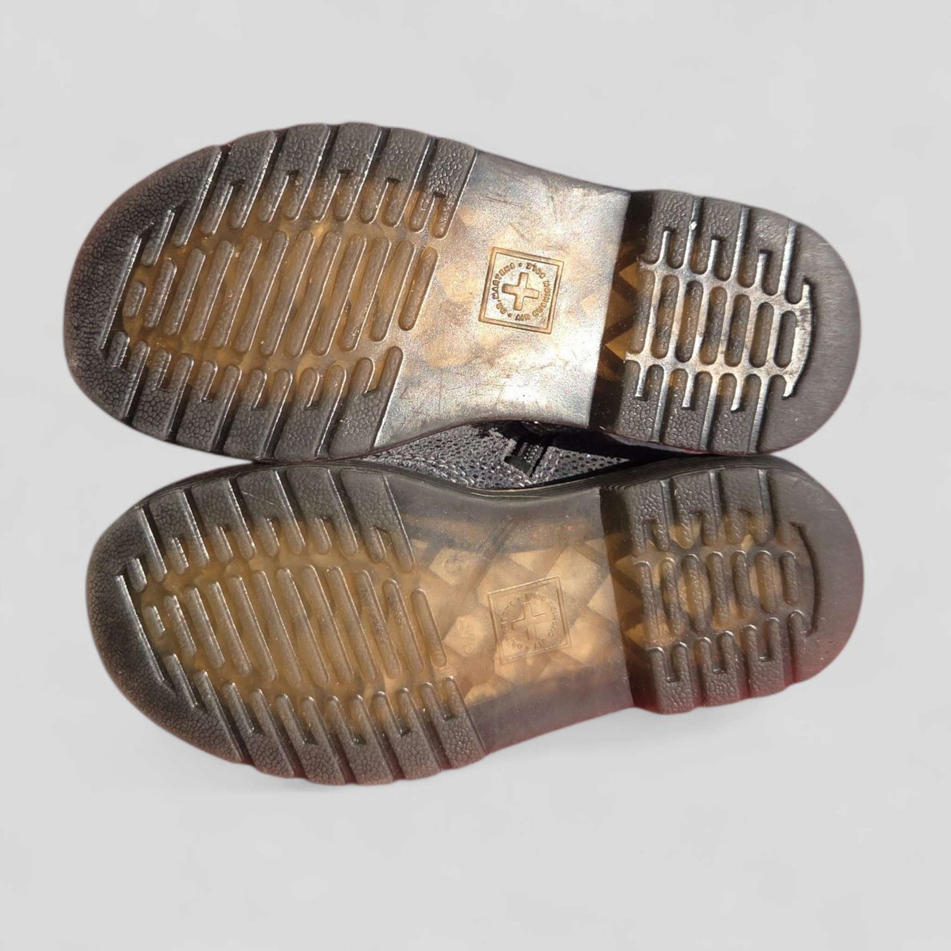 Description : Dr Martin's sz 10 iridescent lace up boots in metallic. Mild rub wear on toes, not scuff.