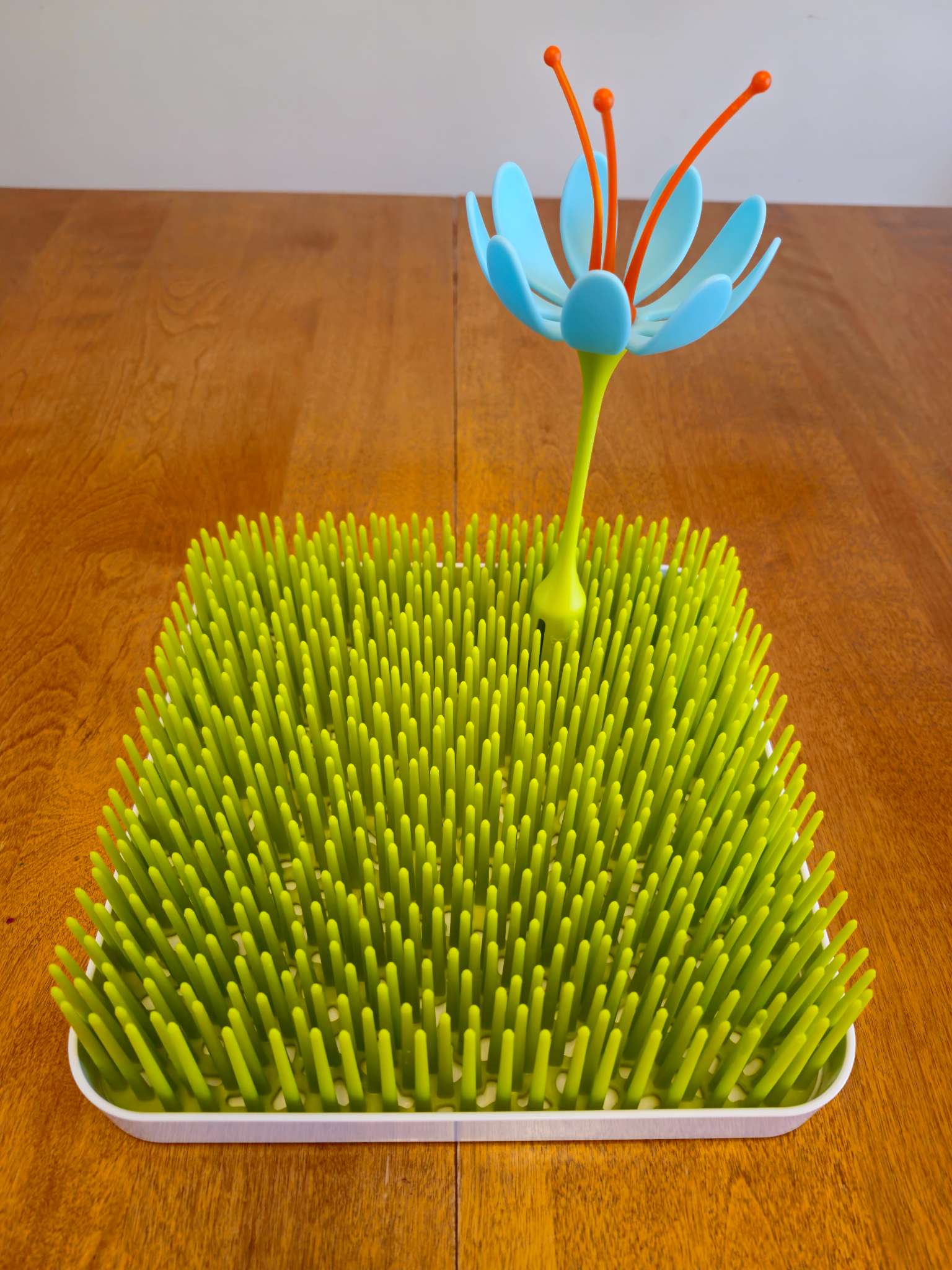 Description : BOON drawing rack for bottles and other bottle feeding equipment. Flexible prongs to accommodate lots of different shapes and feeding accessories. Flower attachment included and is perfect for soothers, bottle nipples. MSRP $25