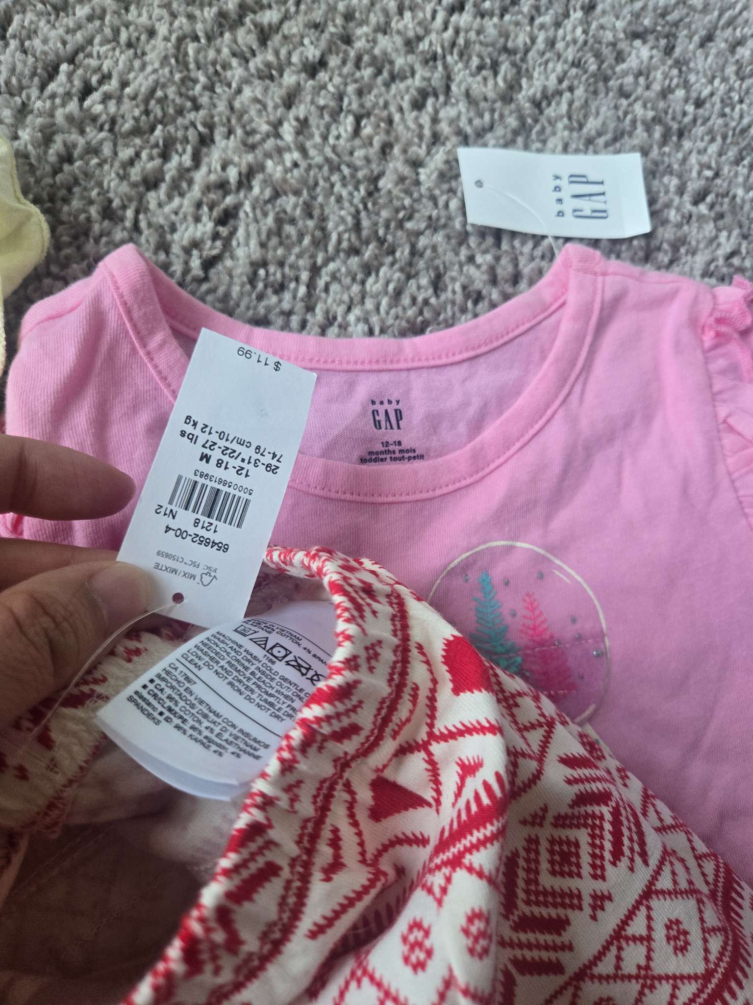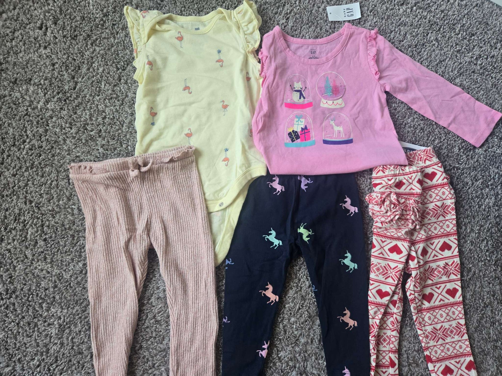 Description : 5 Pcs 12-18 months (2New and 3 EUC) 3 Pants: Zara, GAP and Old Navy 1 Top: Baby GAP 1 Onsie: Baby GAP