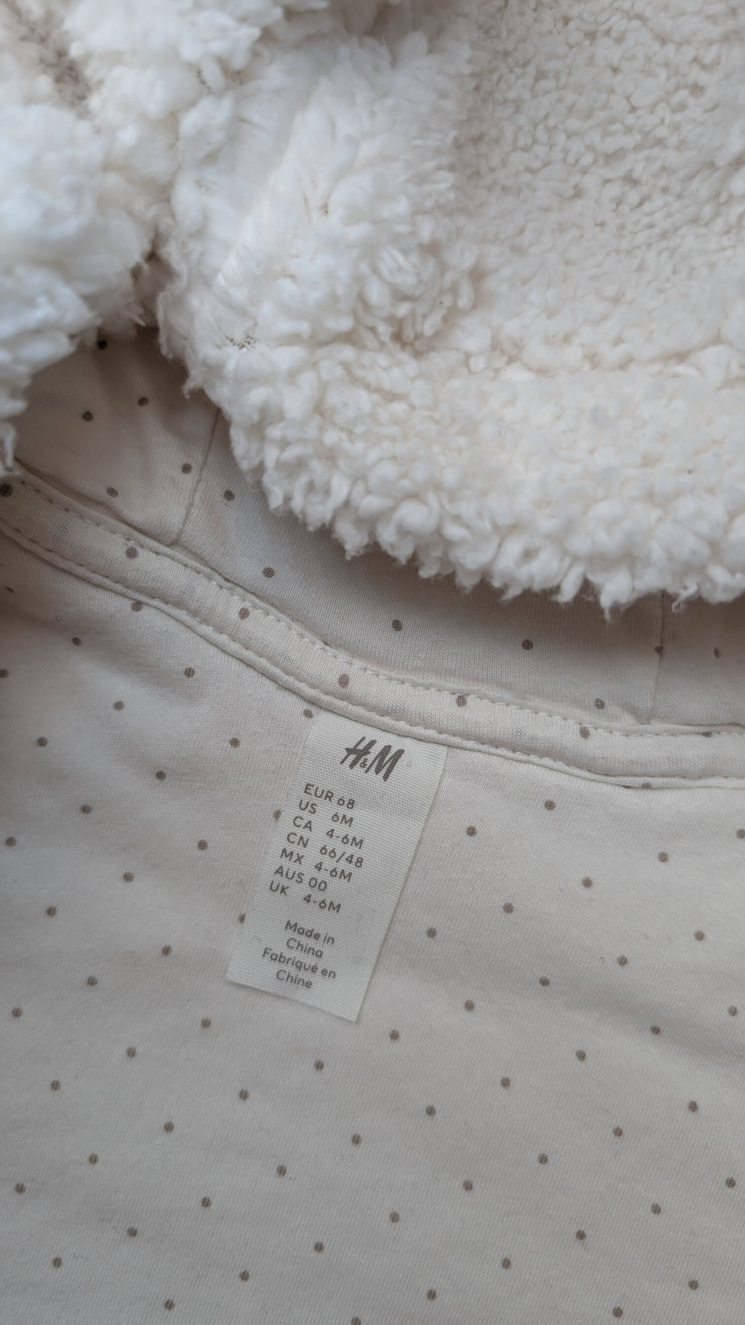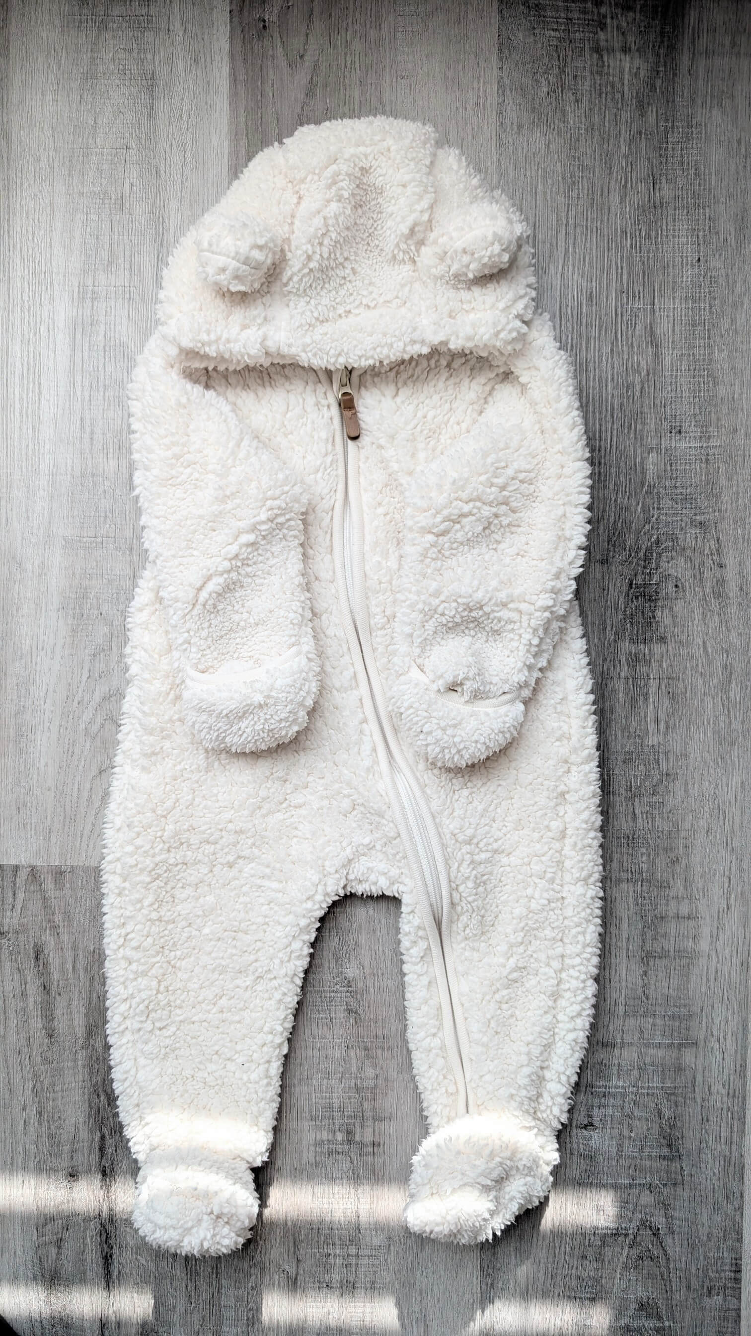 EUC H&M Sherpa Bunting Suit White, Kids 6 Month (3-6M)