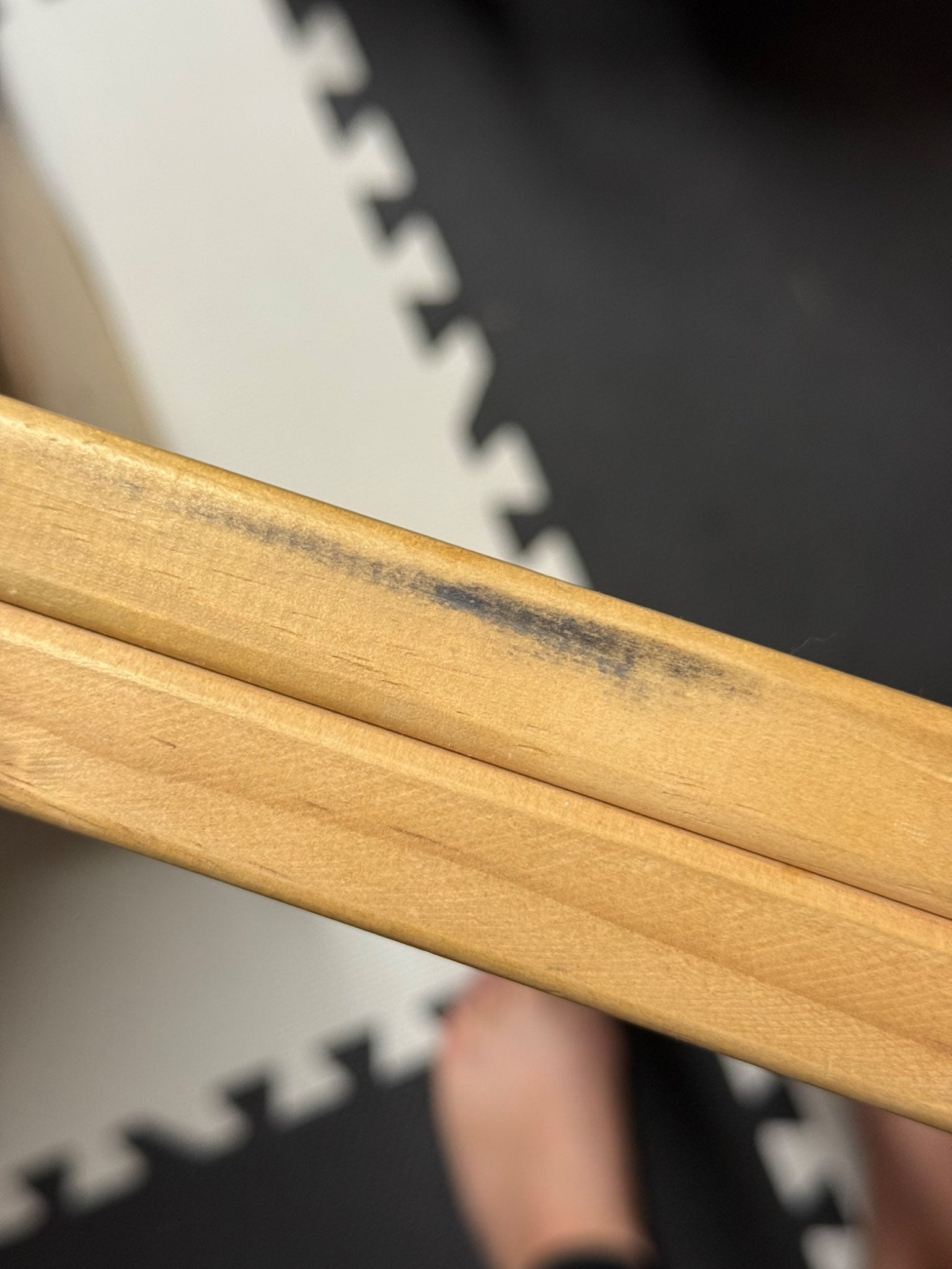 Description : 32" high, minimum 30" wide to a maximum of 47" wide. All beige coloured hardware included. Some black marks on wood from the metal hardware.