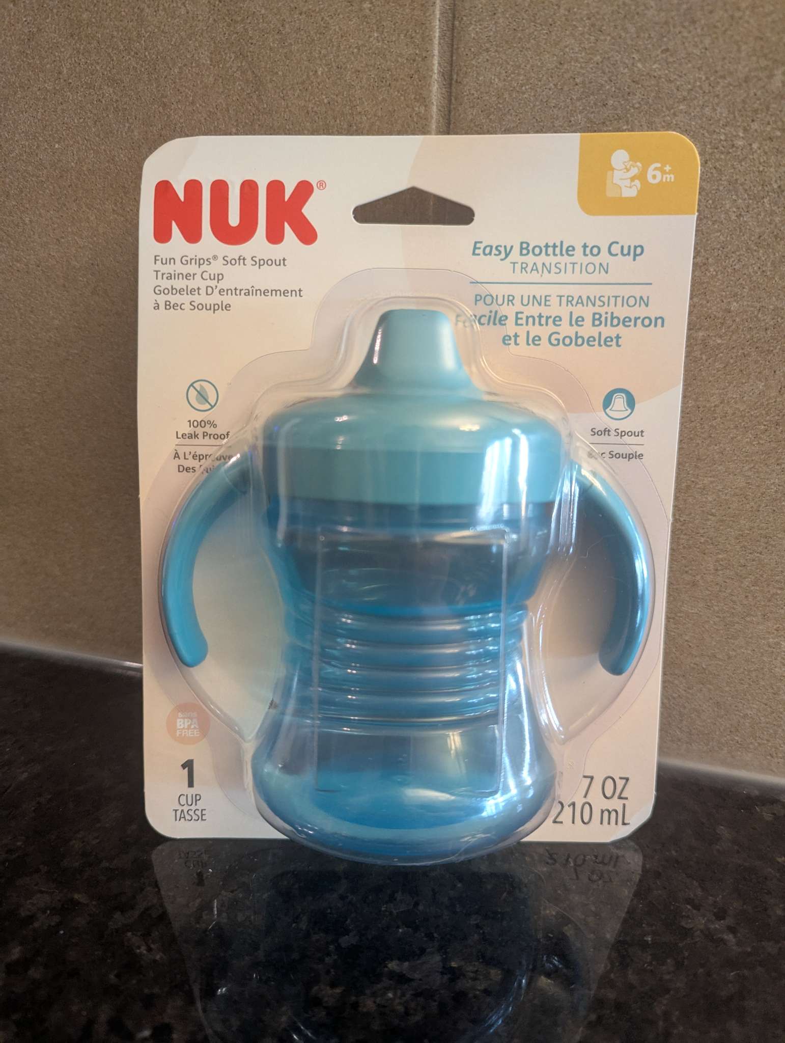 Description : First Essentials By NUK Fun Grips 2-Handle Trainer Soft Spout Sippy Cup, 7 oz