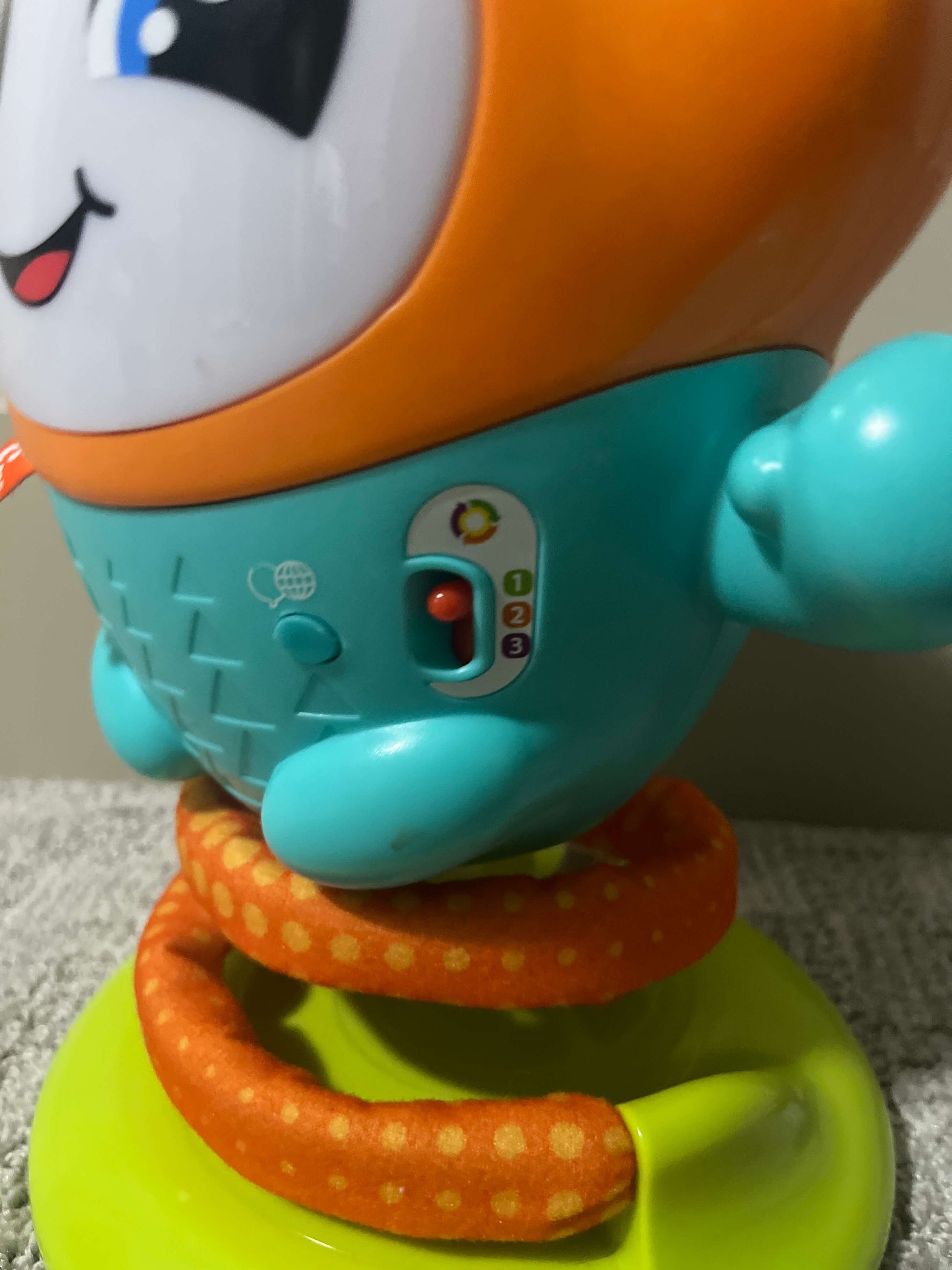 Description : Several buttons and features- Interactive musical toy with a spring bottom that bounces Buttons have songs, lights, bouncing action, letters and numbers Mic button records and plays back with fun remix Currently functions in English only. Currently retails for $60.