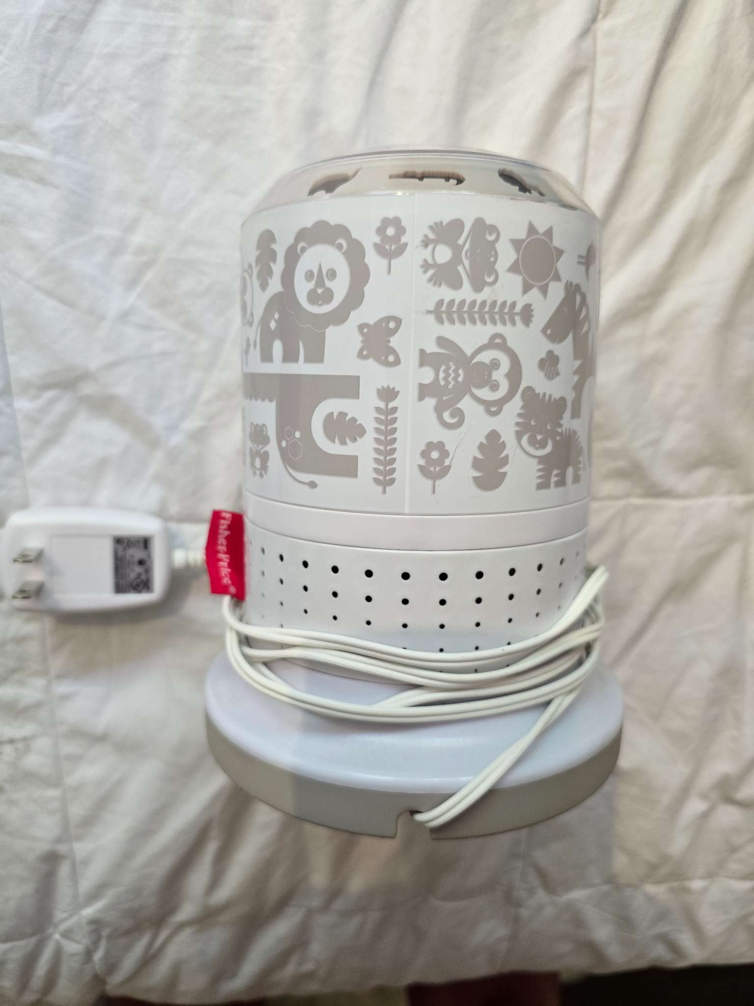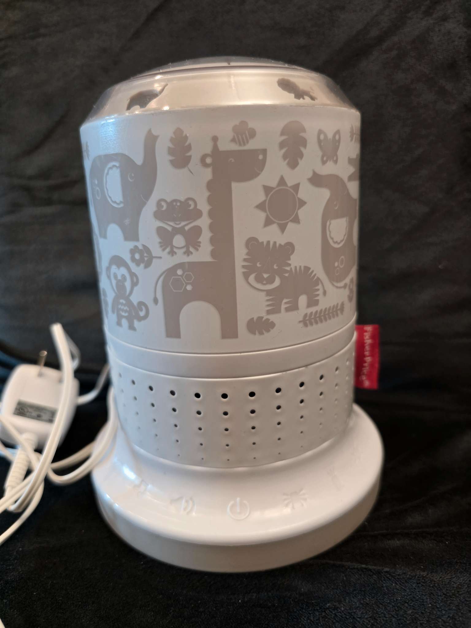 Description : Nursery sound machine that plugs into the wall for all night use (no batteries required). 3 sound options: soothing music, nature sounds and white noise. 3 lighting options with animal projection night light feature. Customize and control the lighting, sounds and timers from your smart device with the convenient smart connect app. This was a game changer for us at bedtime.