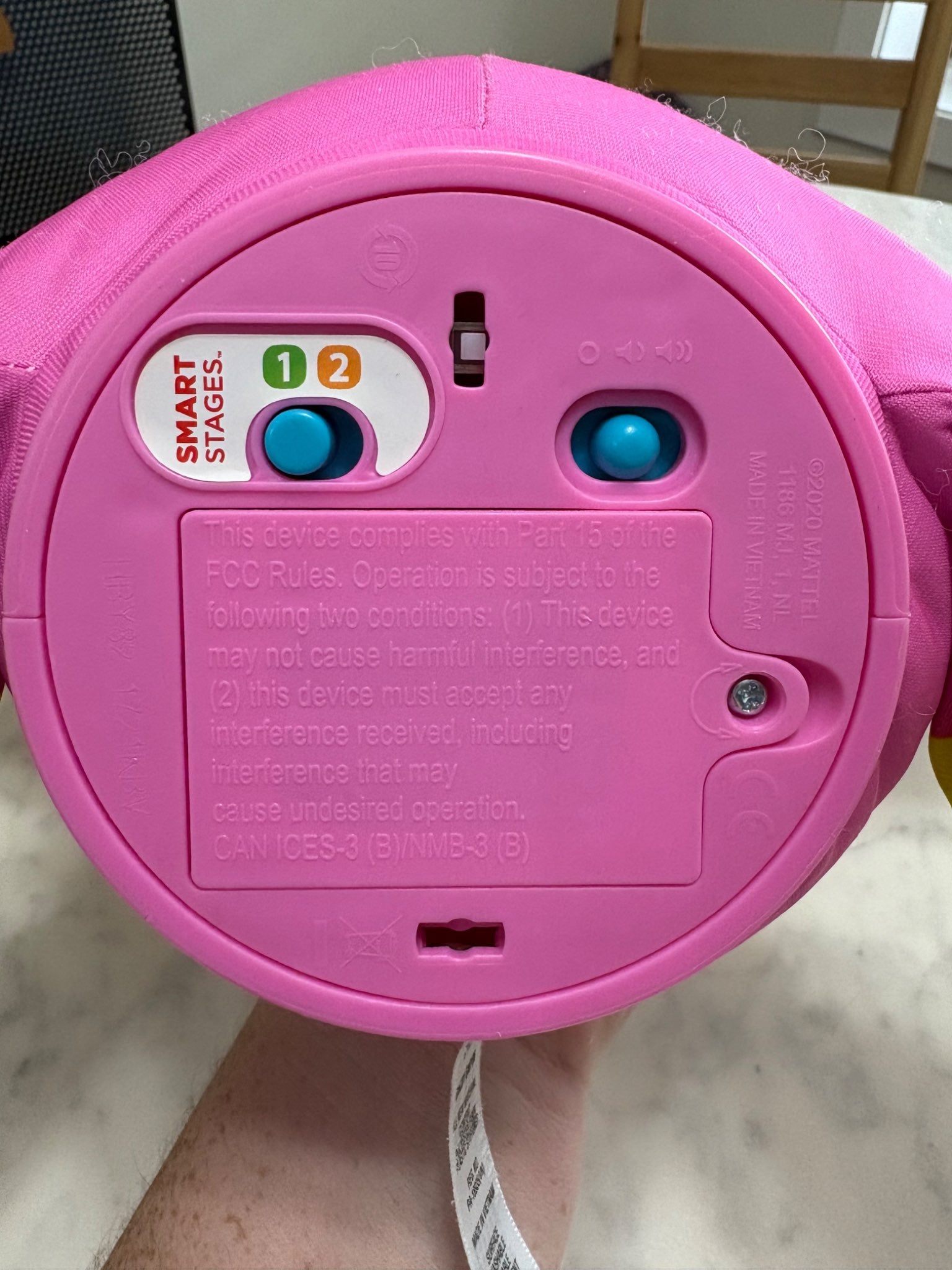Description : Sis is in excellent condition! No rips or stains Large musical plush toy that encourages toddlers to get moving! • Switch up the learning play with two Smart Stages levels • Press the light-up belly or move Sis around to activate songs, sounds and phrases • Teaches the alphabet, counting, colors, animal sounds, greetings and friendship • For toddlers ages 18-36 months