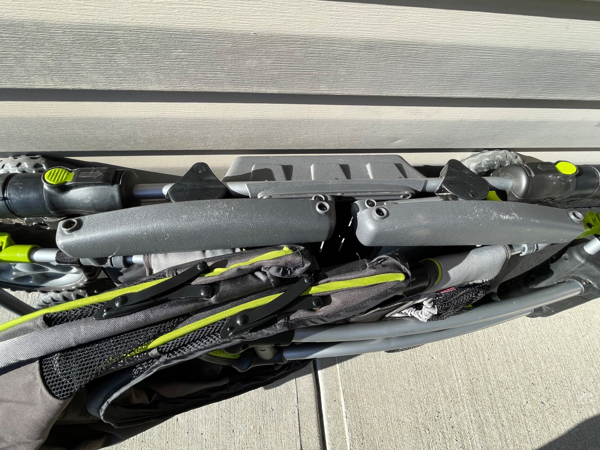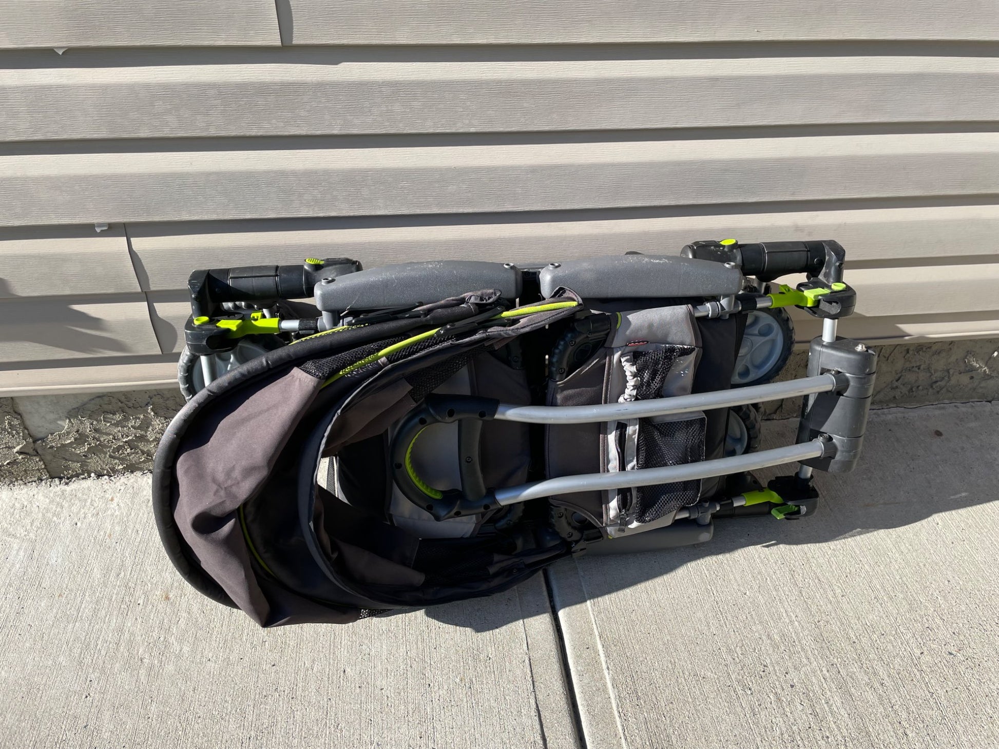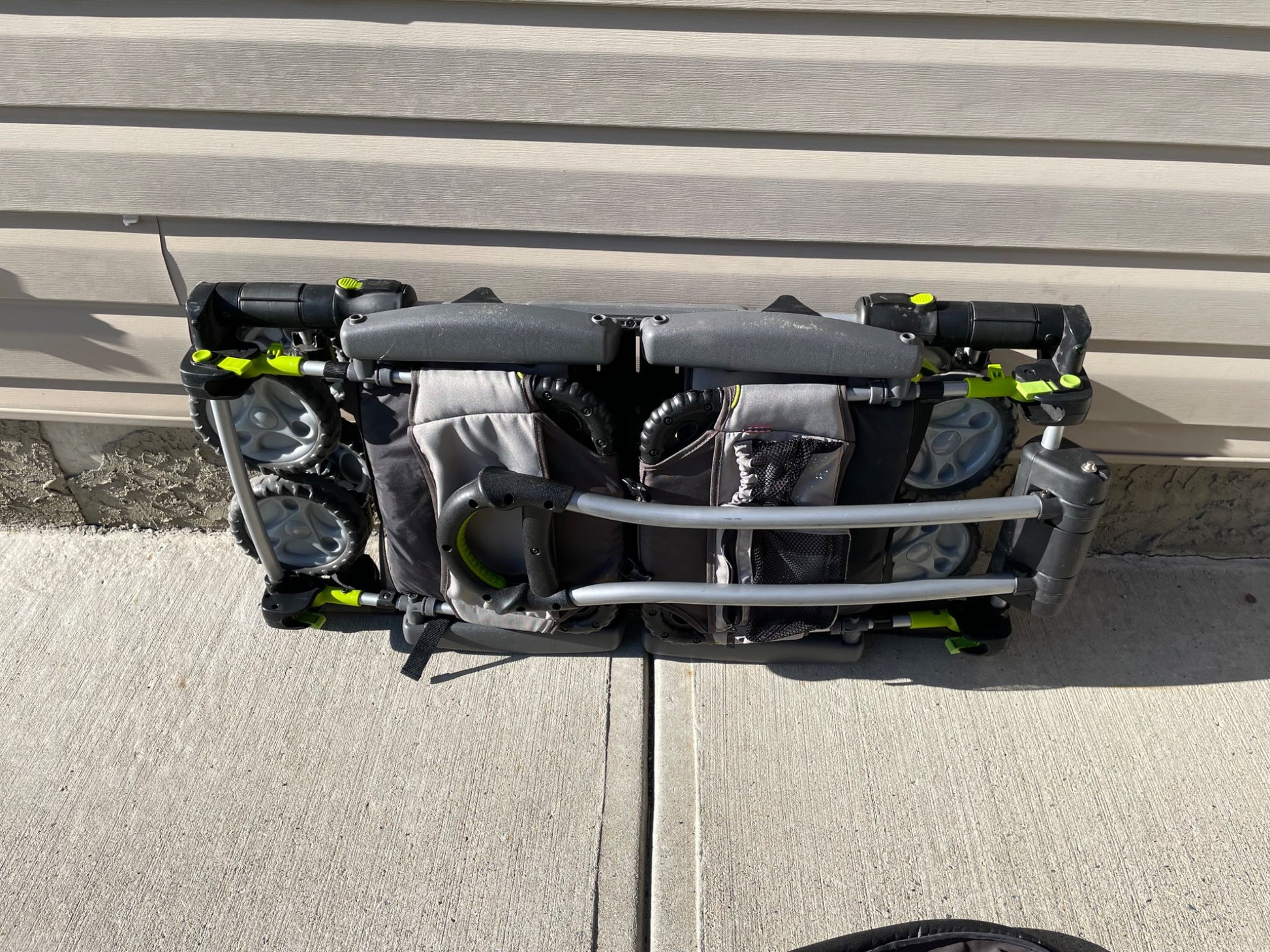 Description : Fisher Price wagon for toddlers. Only has lap belts. Comes with over head shade covers for each seat. Nice comfortable seats for older toddlers. Has some pockets for drinks and to carry other things. Has handle on one side to carry when folded. I loved this wagon and got a lot of compliments, but alas time to let go and another family to enjoy!