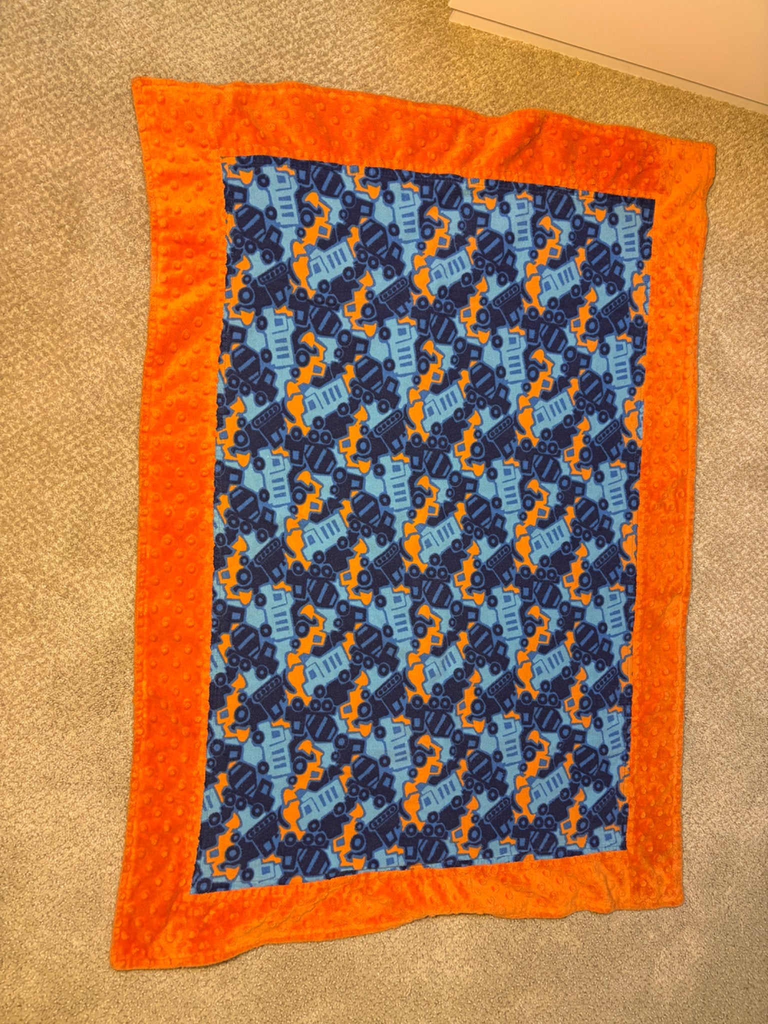 Description : Some pilling on the blue part Fleece truck and orange small blanket