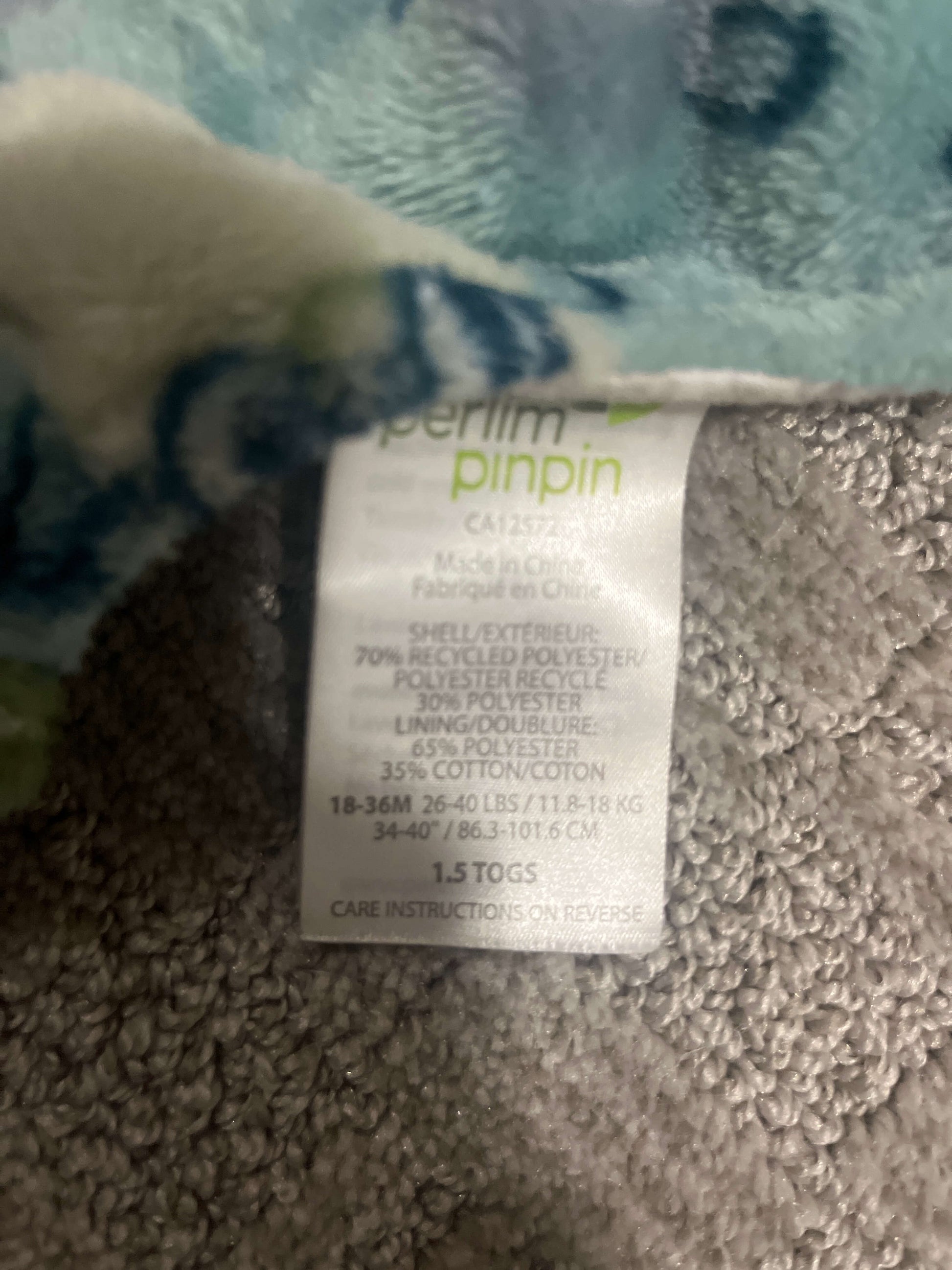 Description : Retails for $43.00. only worn a couple times Sleep sack/ sleep bag: 18-36 months: 1.5 Togs Weight specs: 26-40 lbs. Height specs: 34-40” (86.3-101.6 cm)