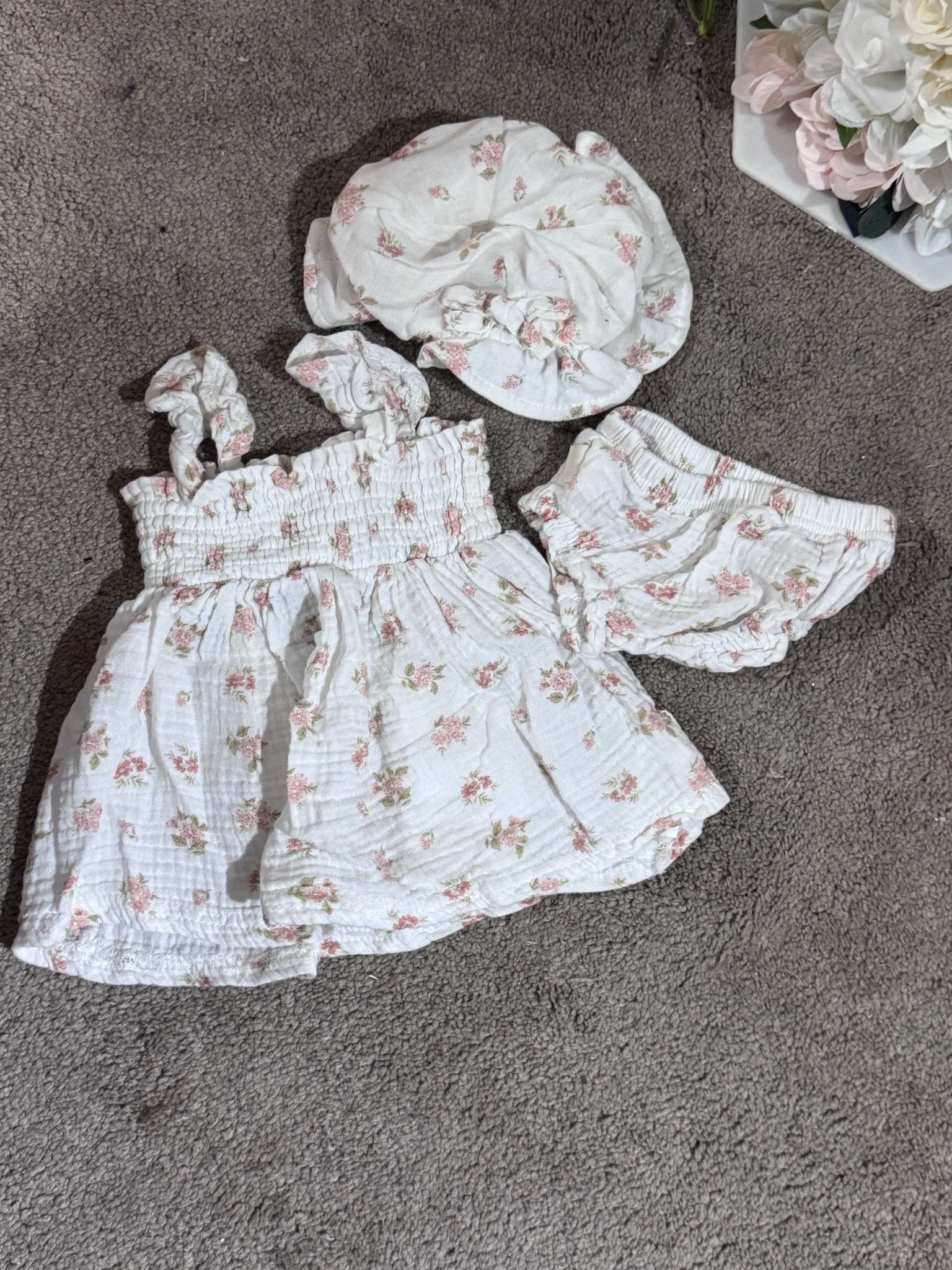 Floral Dress with matching Hat and Diaper cover - 3-6 Months, Kids 6 Month (3-6M)