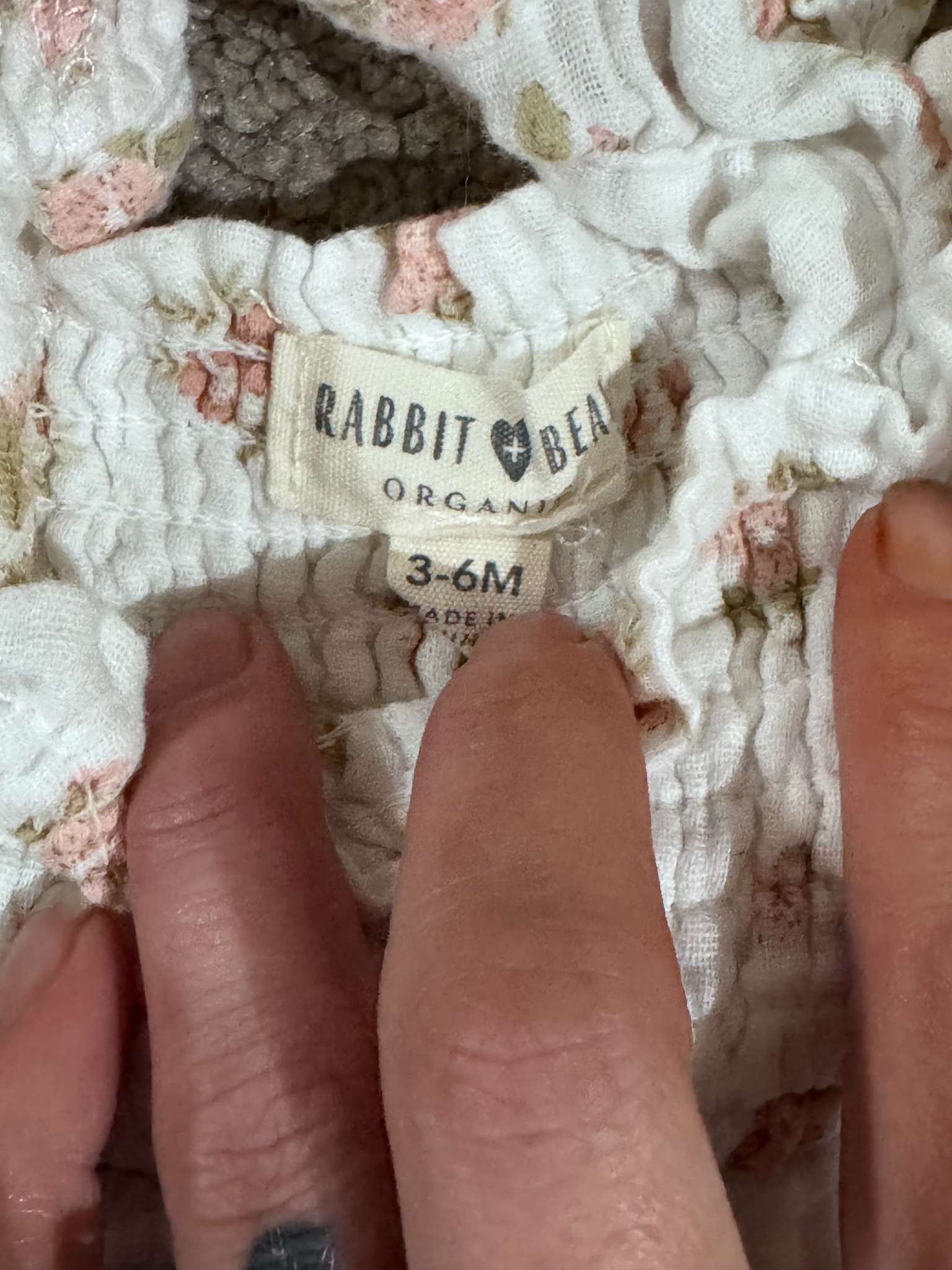 Description : Excellent condition. Absolutely adorable little outfit with a matching hat and diaper cover. Perfect for that little summer babe!!