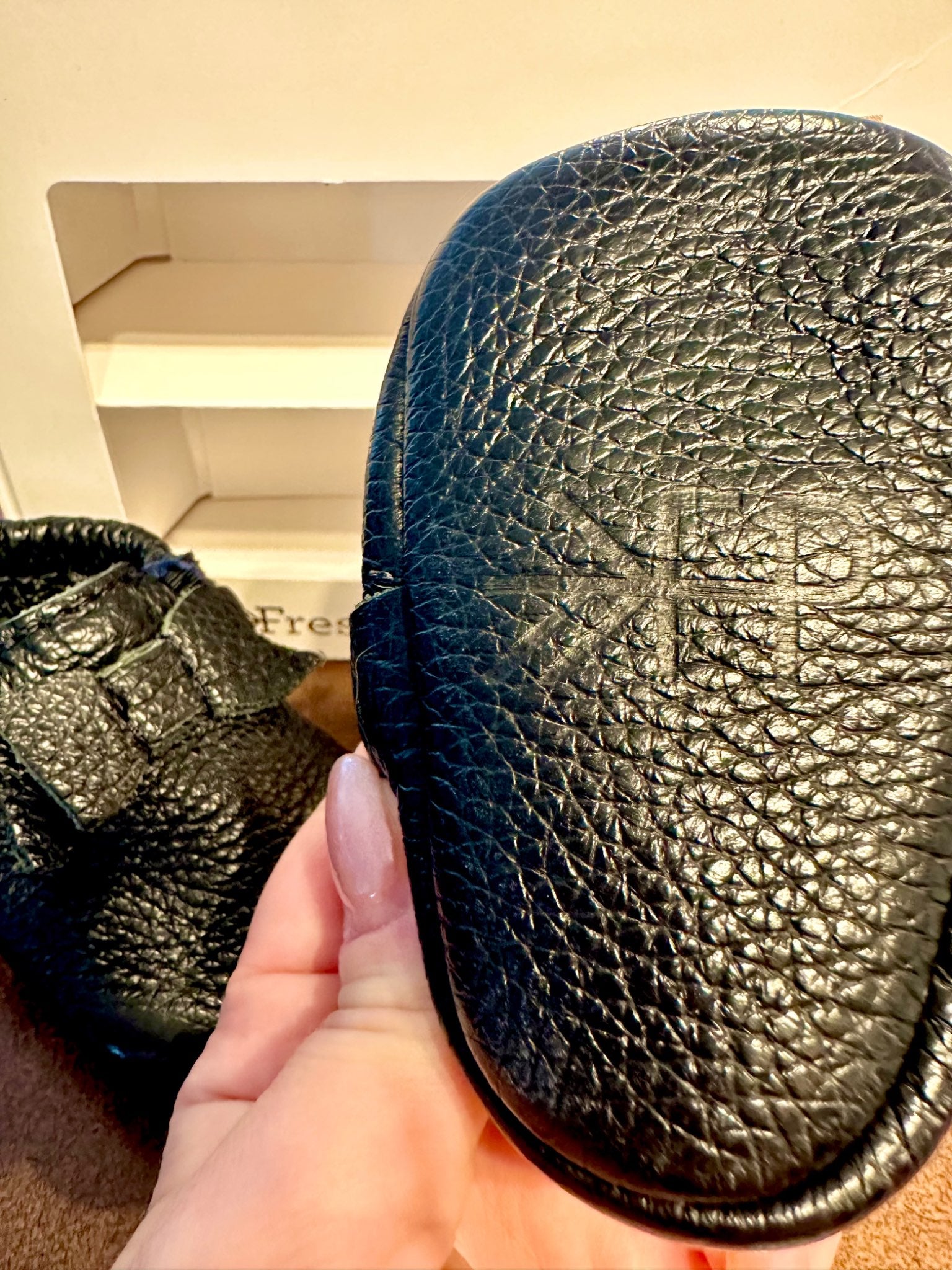 Description : Size 1 - fit baby until about 6 or 7 months. Super easy to get onto feet. Basically used to sit in stroller or show off my baby and get compliments on her cute shoes! Easily the most complimented item in her closet. They look brand new and would be a great baby gift!