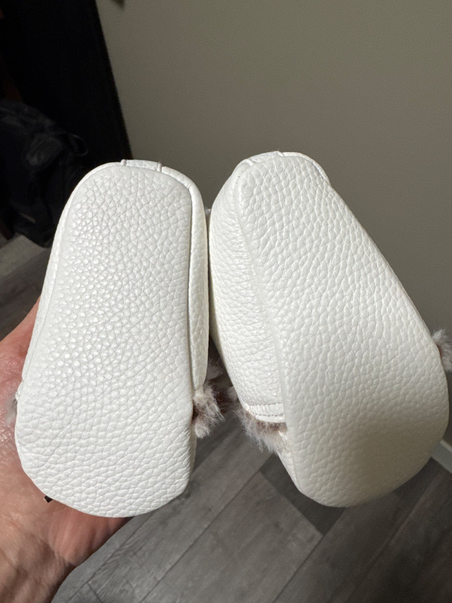 Description : White bootie’s, fur lines, ribbon laces. 6months