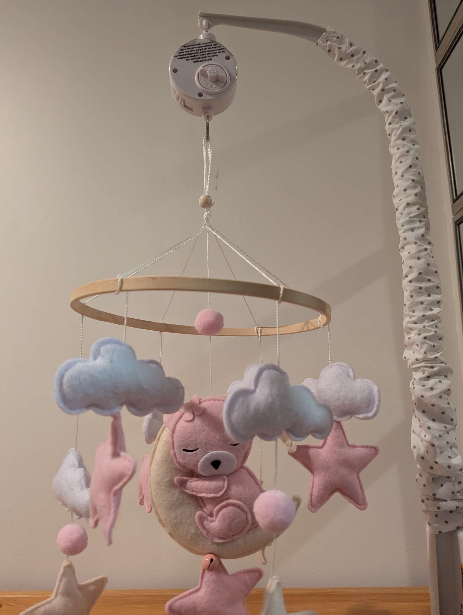 Description : Felt Mobile with Extra Long Crib Arm for baby safety Excellent Condition