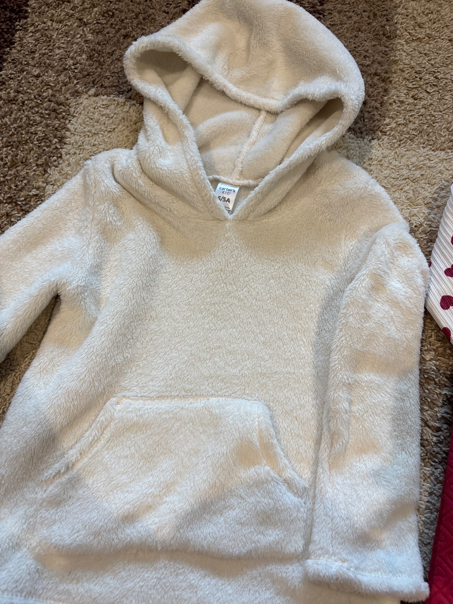 Description : White soft hoodie is Children’s place sz:5 Romper with shirt is Rare Editions sz:5 Pink flower top is children’s place sz:5 All in excellent condition