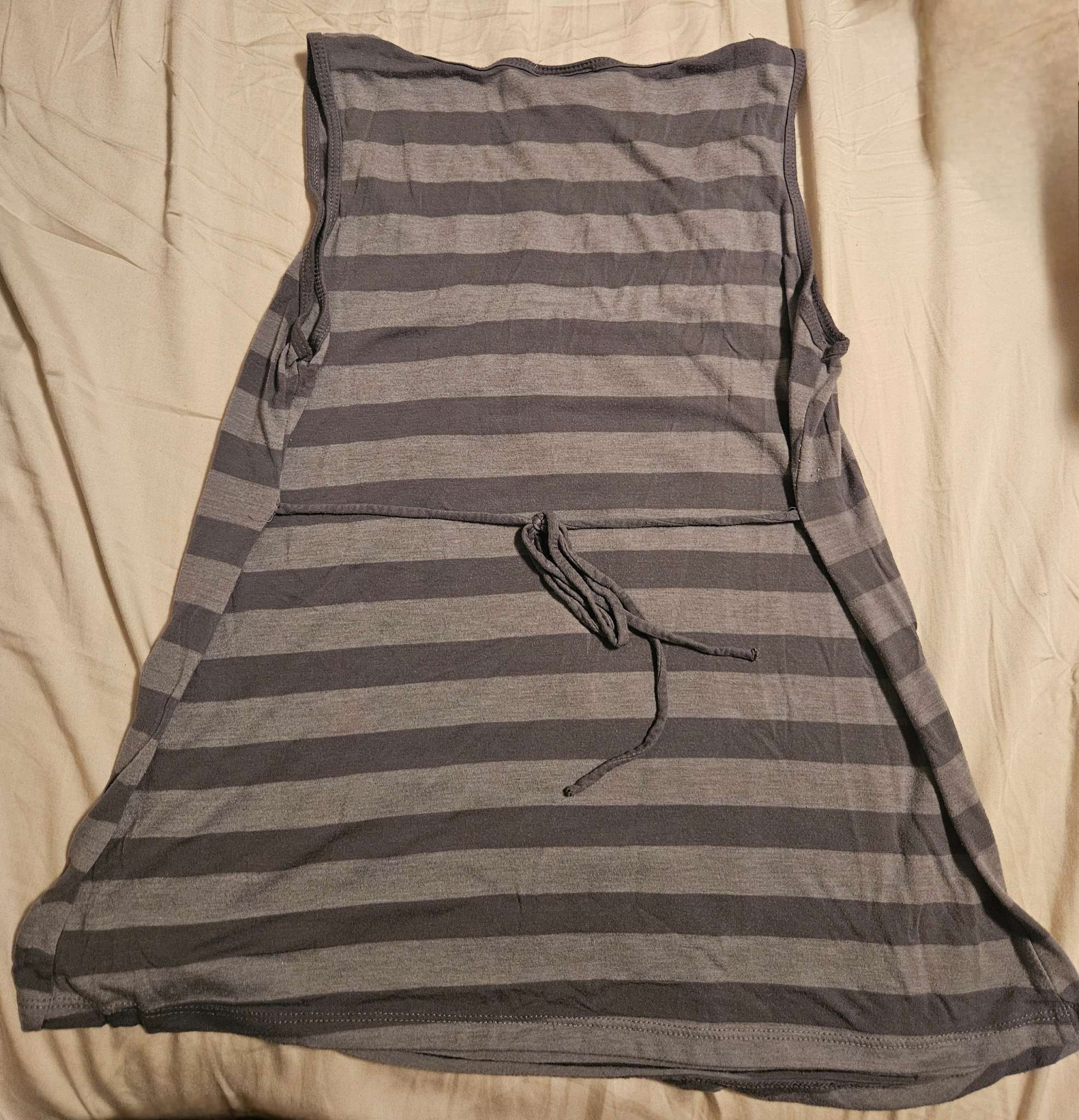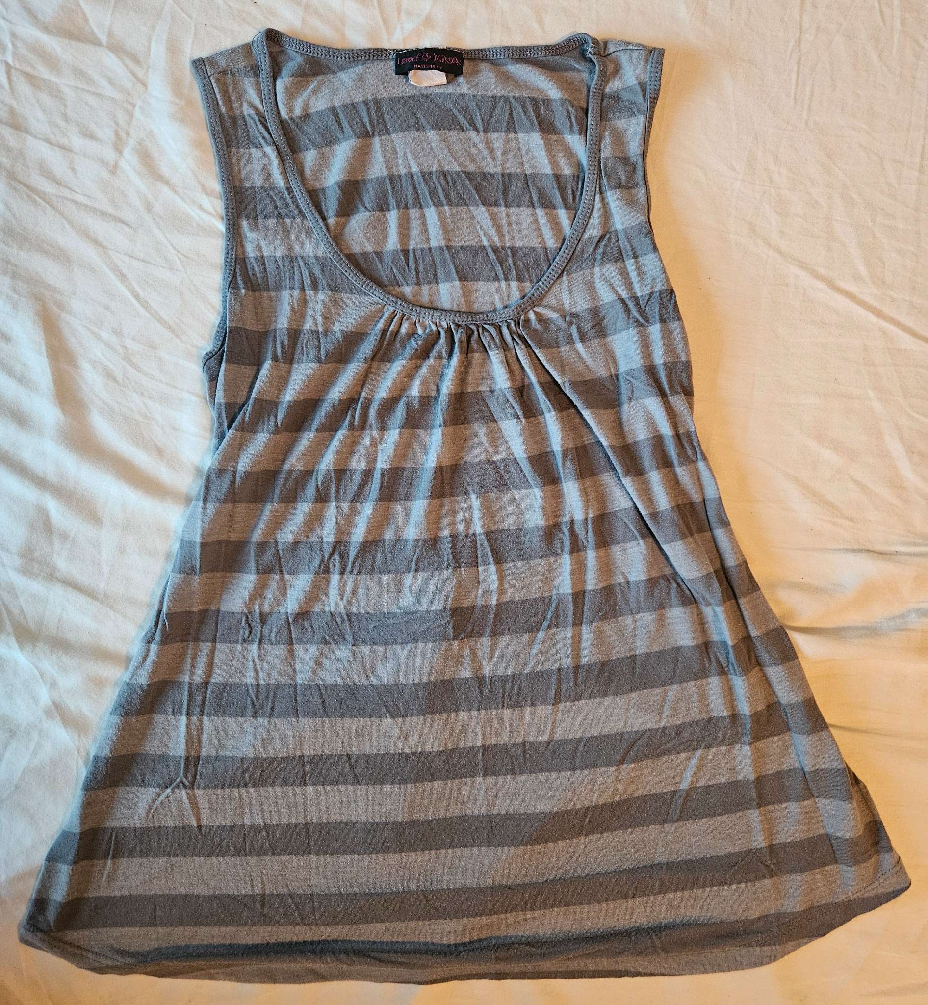 Grey striped maternity shirt with back tie back size Large , Maternity L (12-14)
