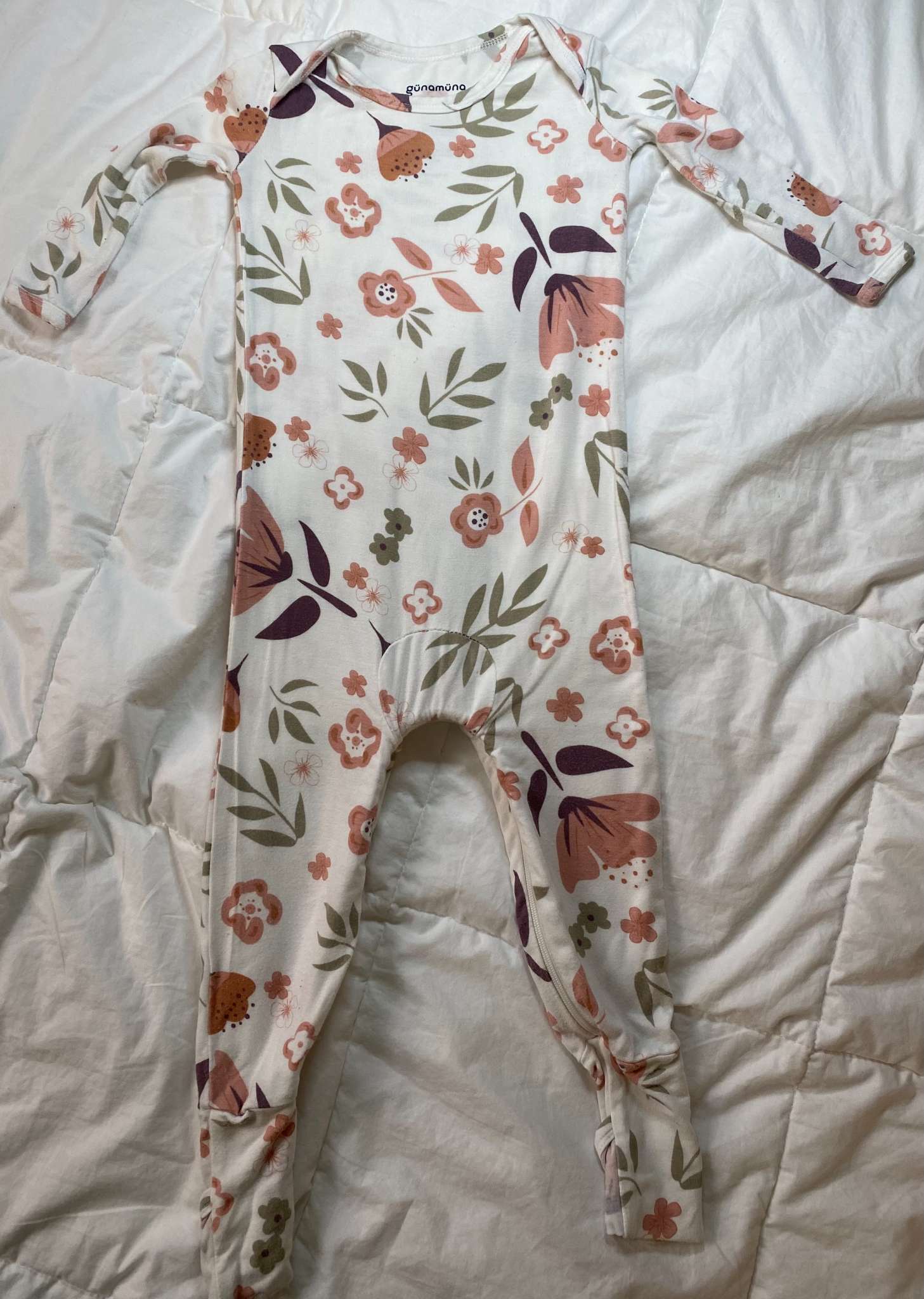 Gunamuna girl's convertible floral bloom footie 9-12M (MSRP $45), Kids 12 Month (9-12M)