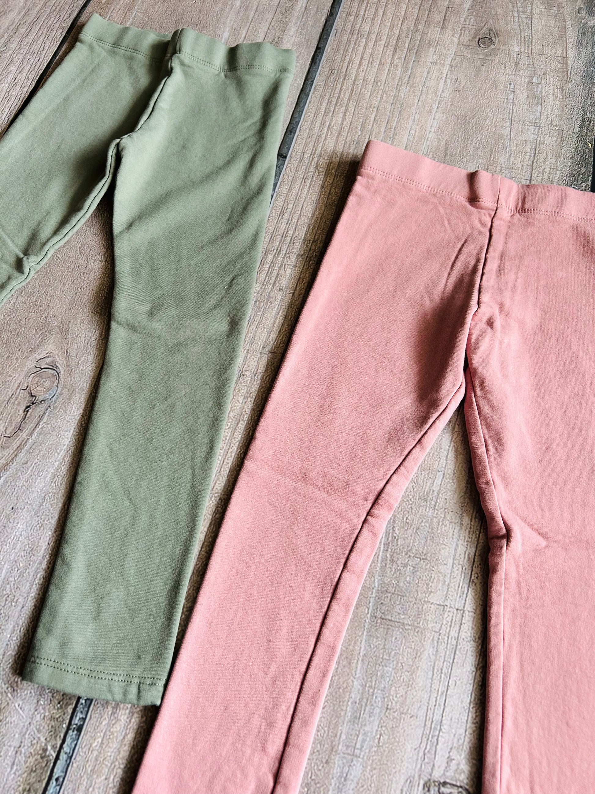 H&M size 5-6yrs girls olive green and dusty rose pink brushed leggings, like new, Kids 5/5T (extra small)
