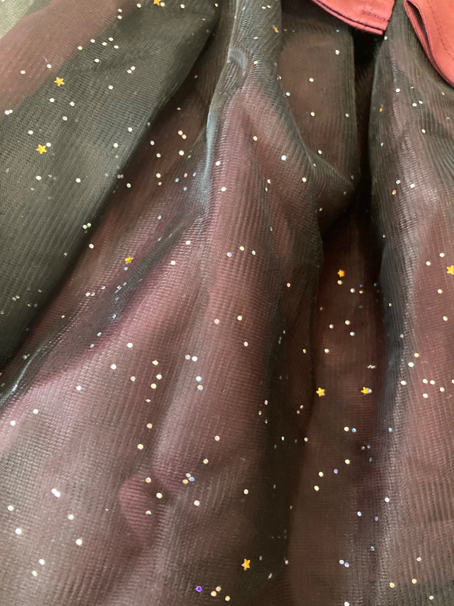 Description : Sparkle tulle skirt, silver printed collar and necklace detail