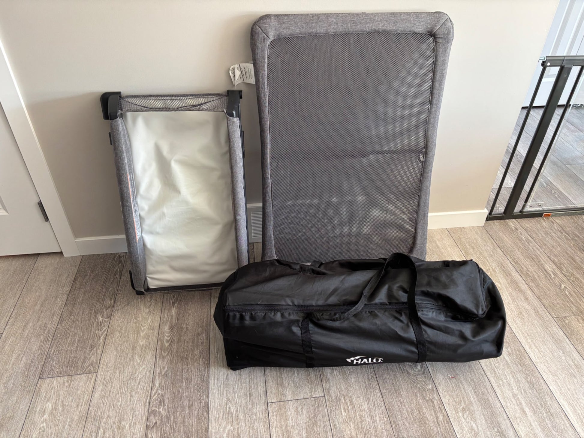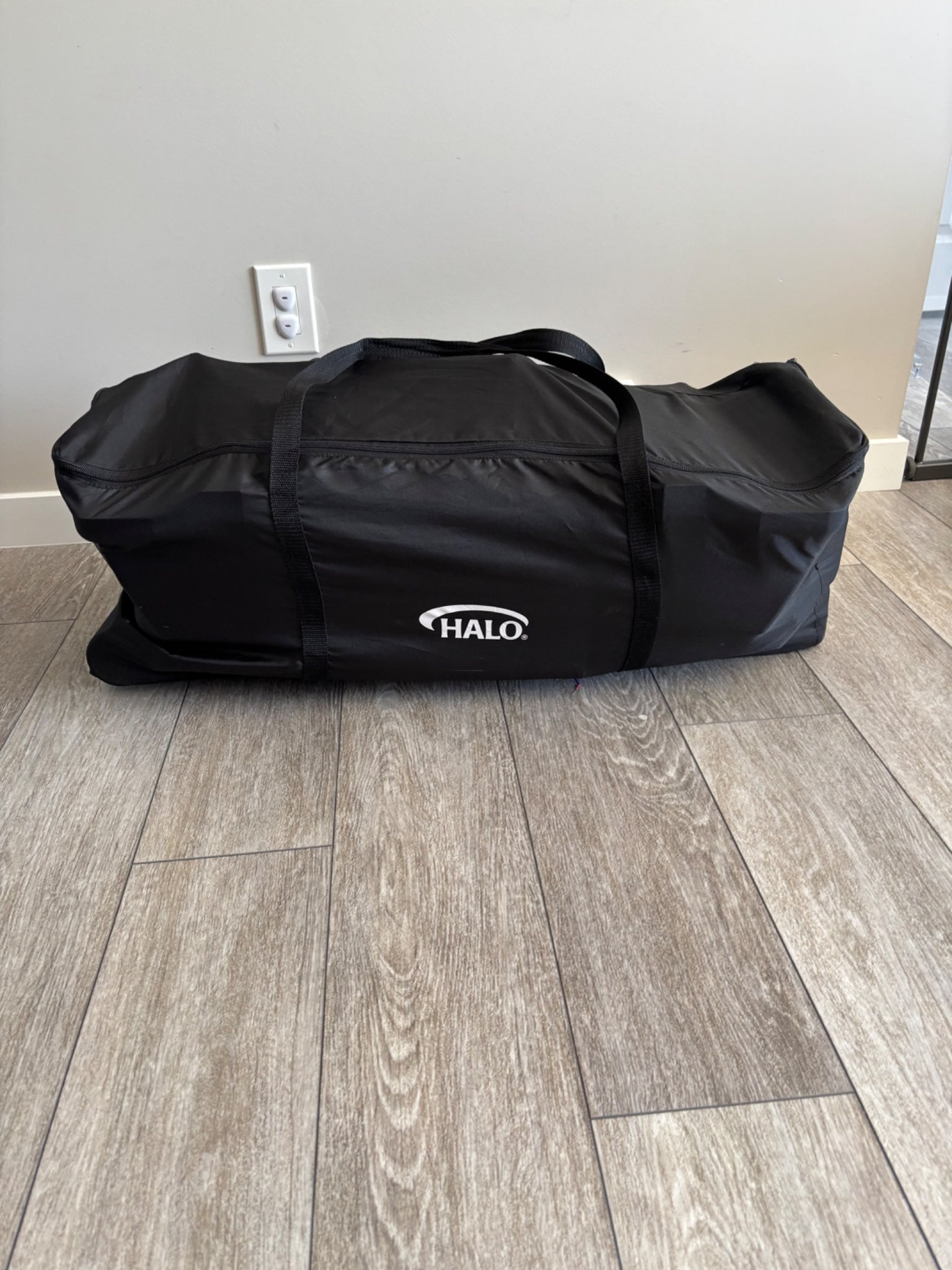 Description : Halo DreamNest Plus with change table attachment. Everything folds up nicely into a bag.