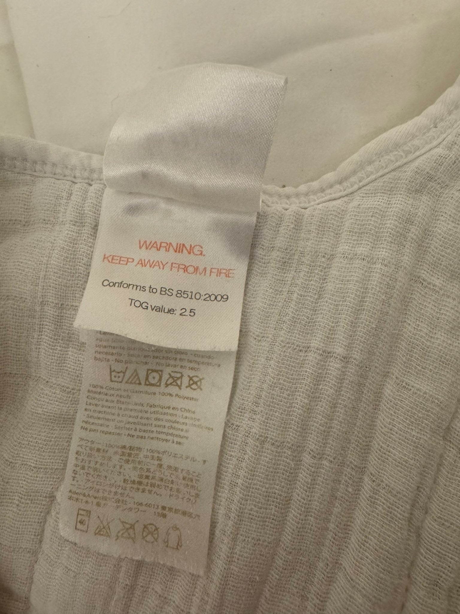Description : Aiden + Anais sleep sack, medium (6-12 mo, 18-24 mo). 2.5 tog