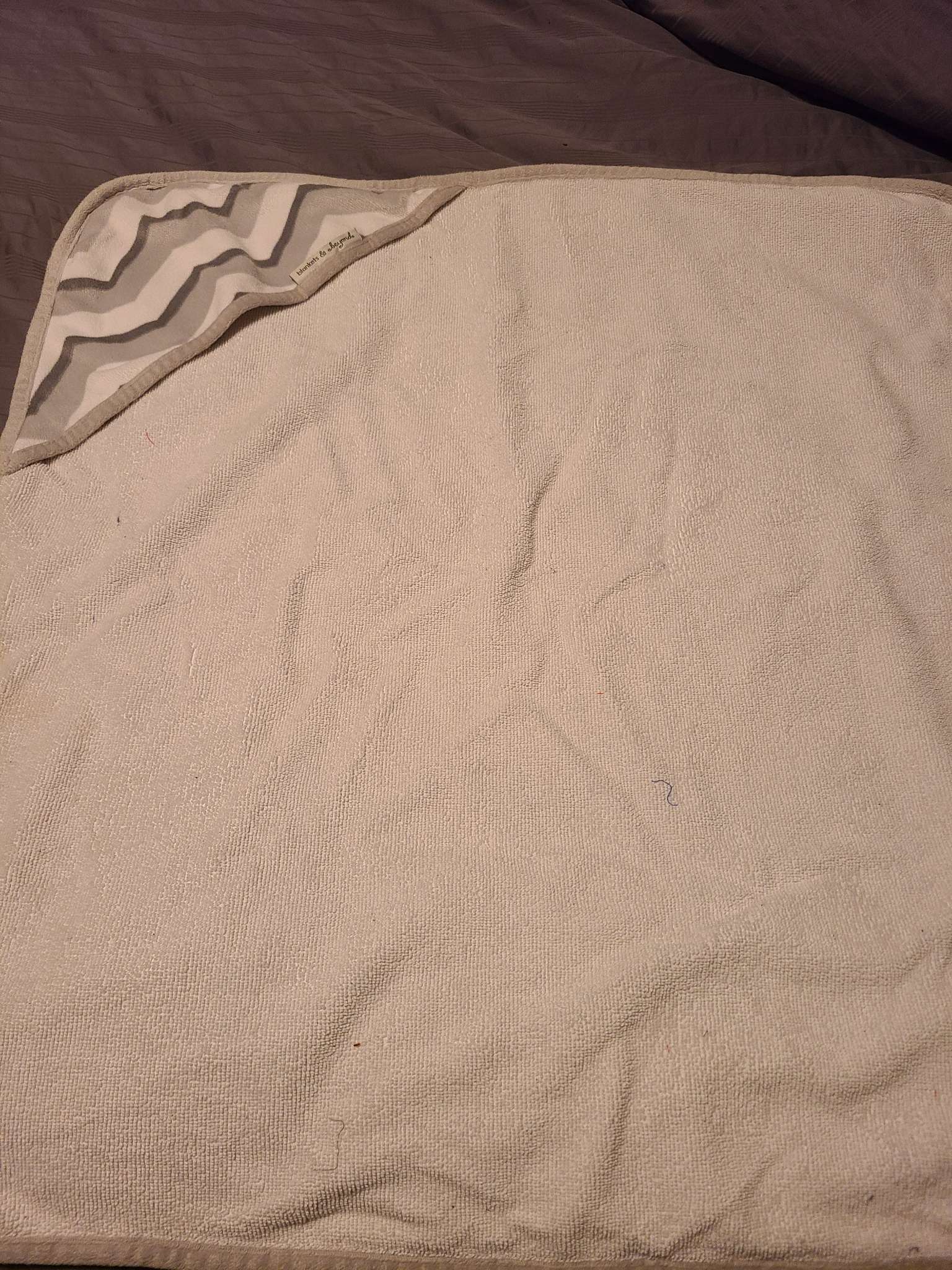 Description : Hooded towel.. Grey with strips.. very absorbent and very soft