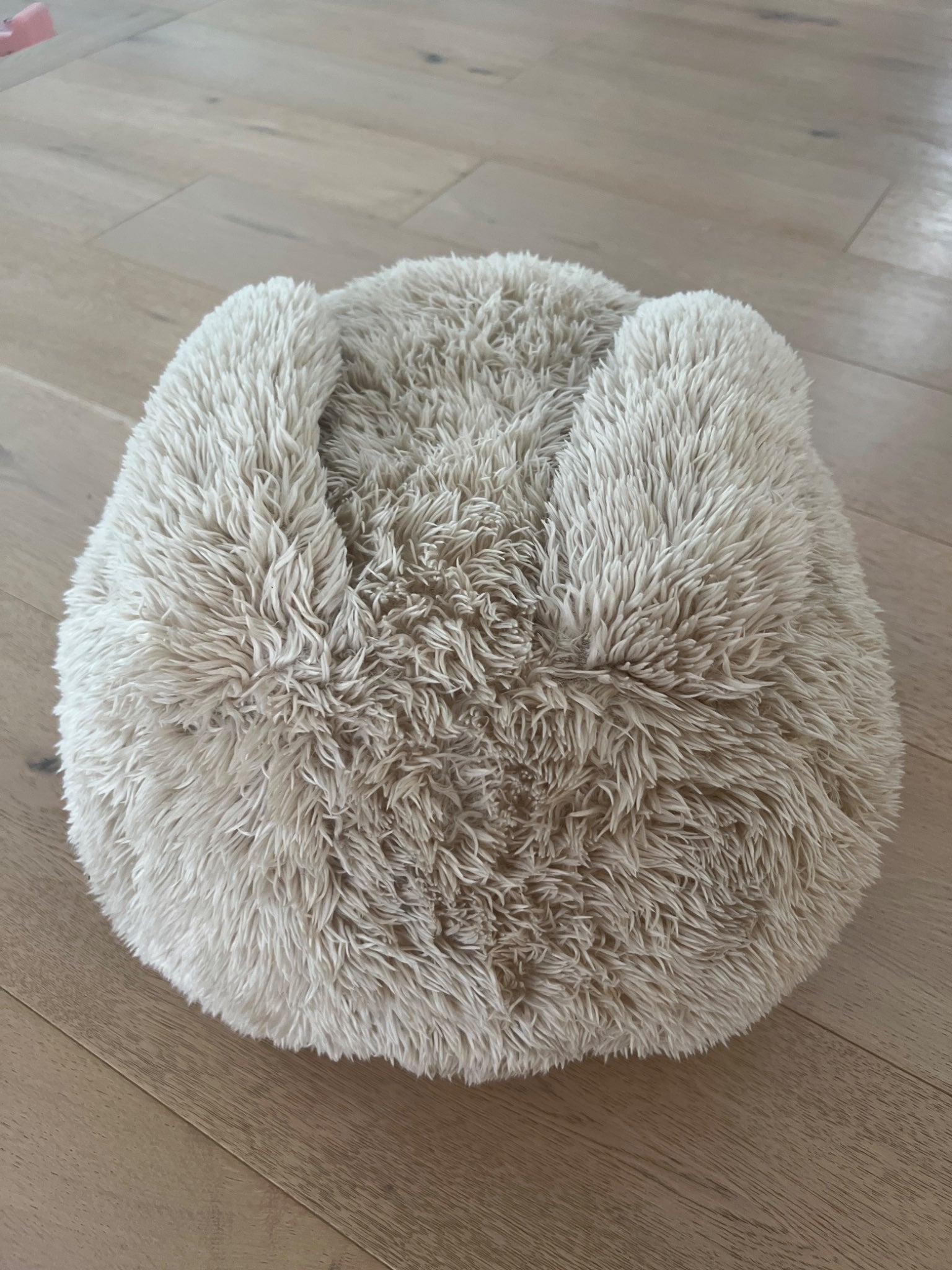 Description : Has been sitting in a corner. Faceless bunny throw pillow or plushie. Very soft and squishy. It’s medium to large size.
