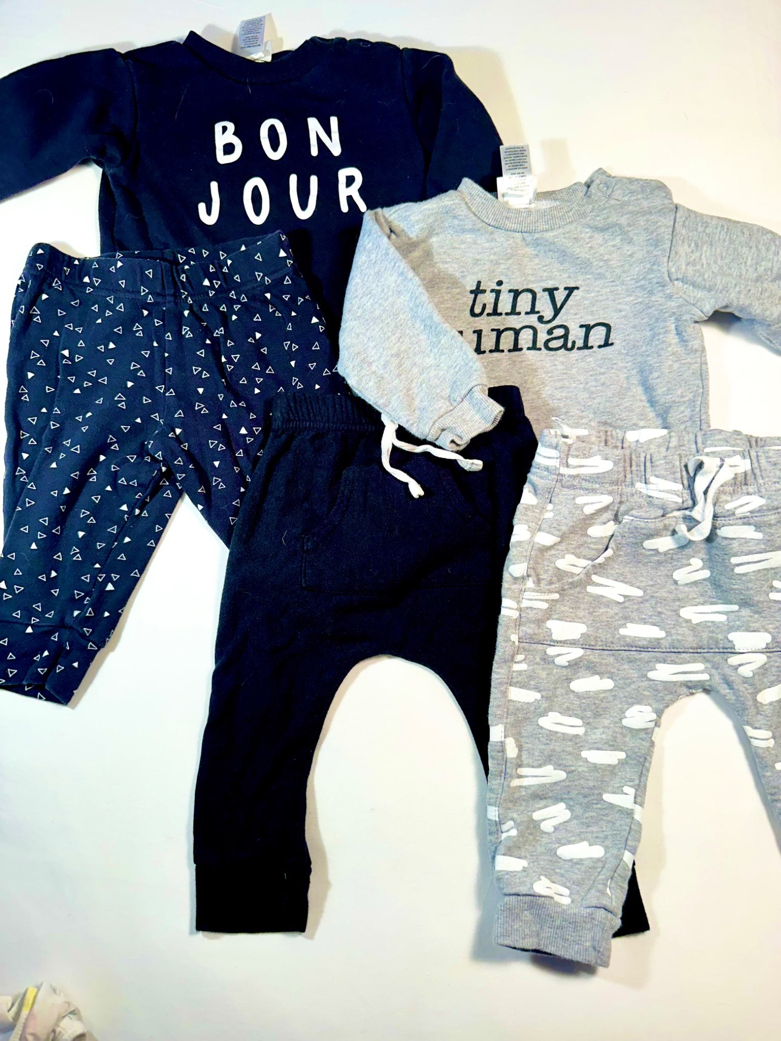 Description : Black & Grey Indigo Sweater bundles. Pants also include a George pant and Mila pant. 6-12