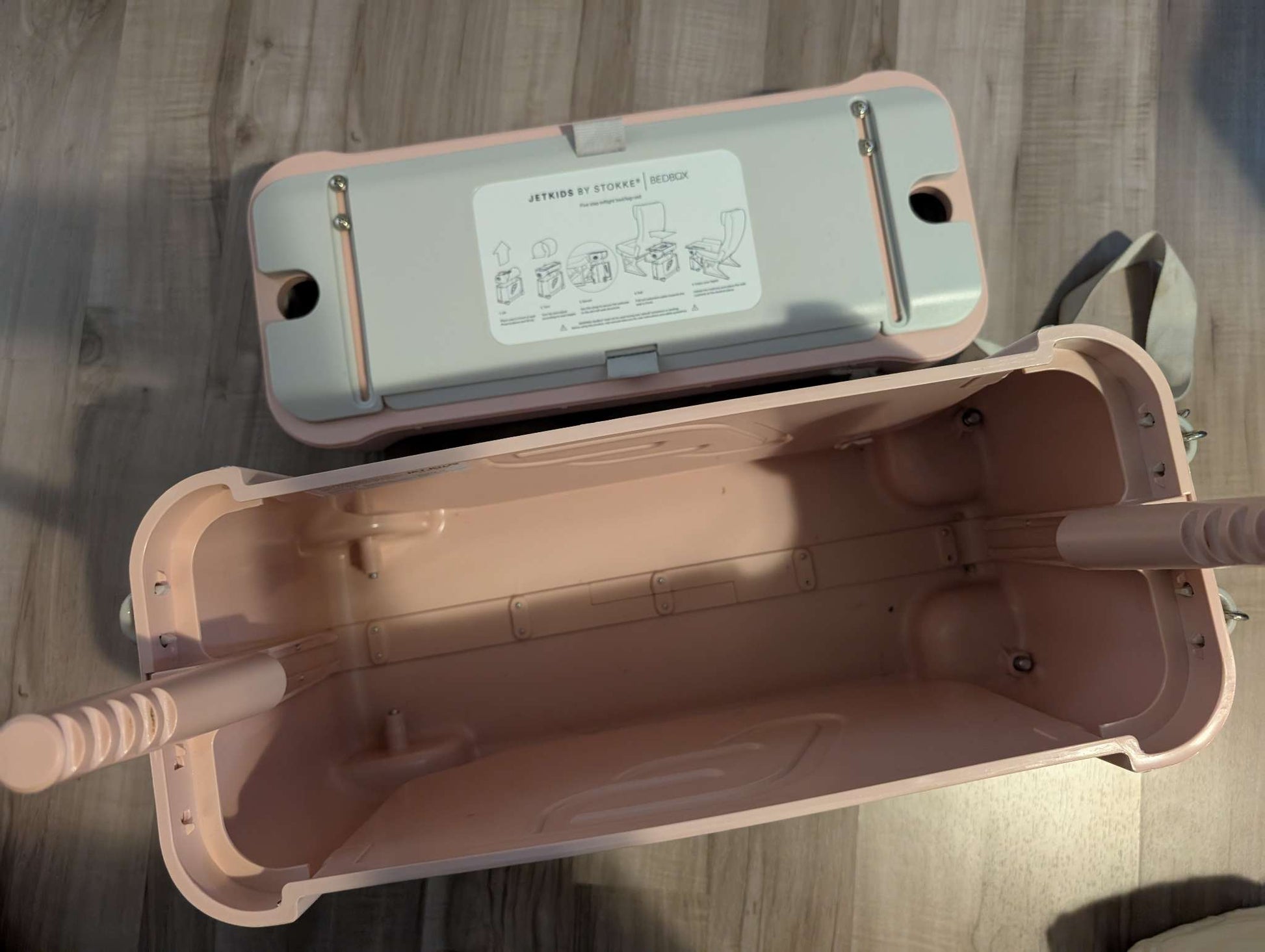 Description : JetKids by Stokke RideBox / BedBox – Pink Make travel easier and more fun with this JetKids by Stokke BedBox in Pink – the ultimate travel essential for kids! Perfect for family adventures, this premium ride-on suitcase transforms into an in-flight bed or leg rest, keeping little travelers comfortable on long journeys. ✨ Features: Ride-on suitcase – kids can sit, ride, or be pulled through the airport Spacious storage for toys, snacks, and essentials Converts into an in-flight bed/leg rest in just a few simple steps Adjustable strap for carrying or pulling Lightweight yet durable design Recommended for ages 2–7 years 💖 Color: Soft Pink (stylish and easy to spot!) This one is in excellent condition (light signs of use only). From a smoke-free, pet-free home. ⭐ Retails new for around $300 Perfect for keeping kids happy and parents stress-free when traveling!