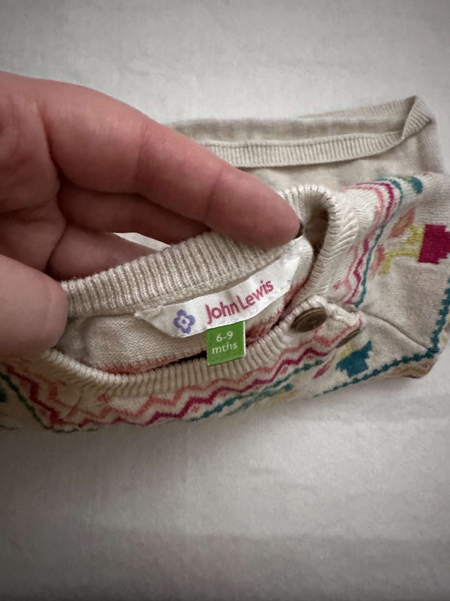 Description : All 6-9m. John Lewis spring chick sweater; Next brand striped dress; H&M red swiss dot pants. Delicate washed on cold, hung to dry.