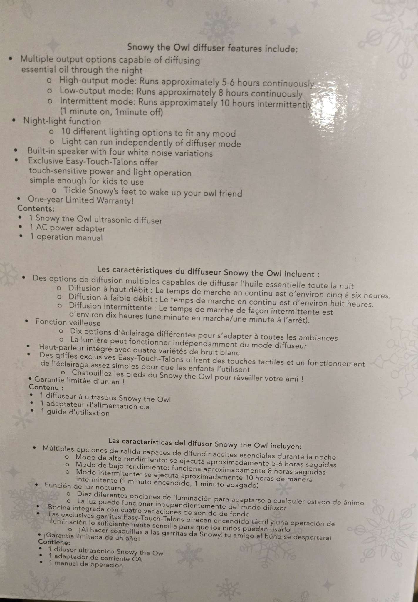 Description : Multiple diffusing output options 10 Nightlight functions Built in speaker with 4 white sound variations Touch sensitive power and light operation